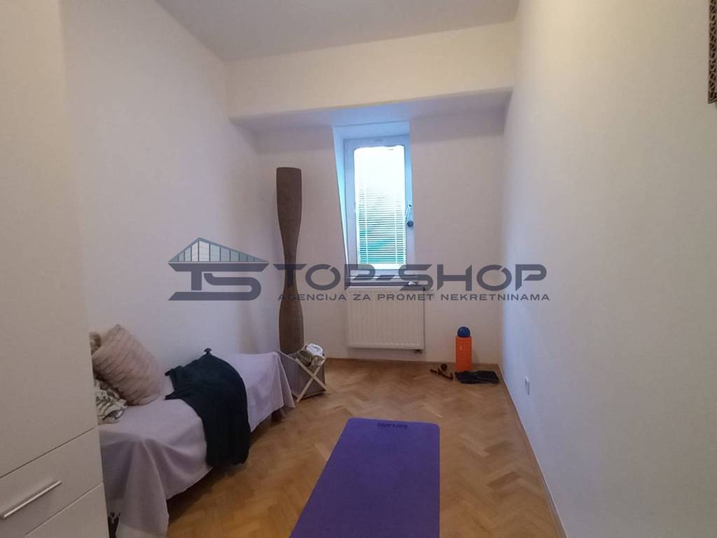For rent is a spacious 4-room apartment with an area of 100 m2, located on the third floor of a building with a total of four floors, in the attractive Zagreb neighborhood of Pantovčak.