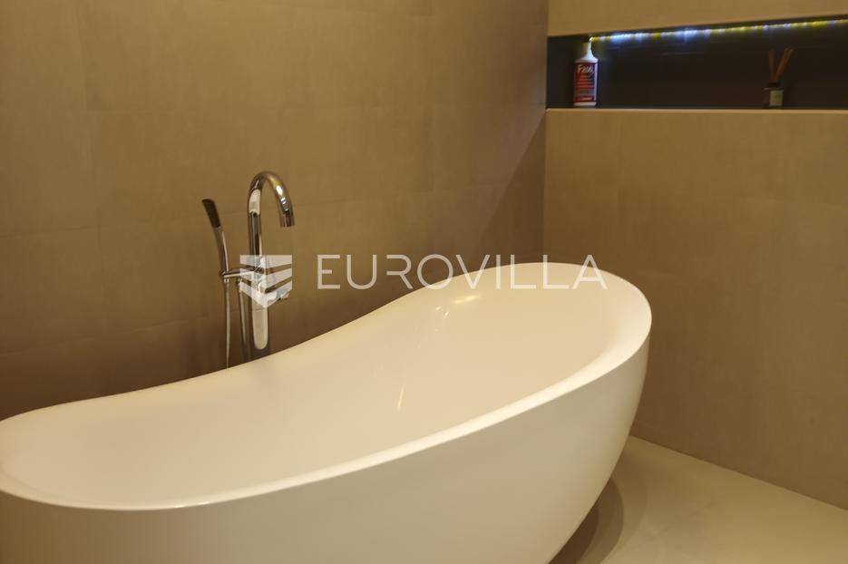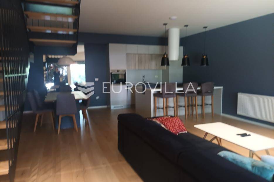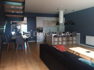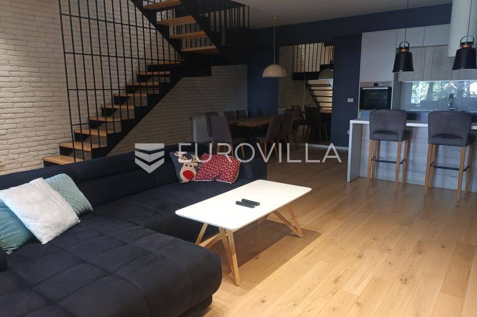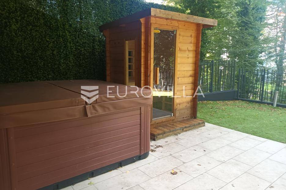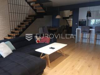 Zagreb, Gospočak - luksuzan četverosoban stan na tri etaže s vrtom i 2 parking mjestaNalazi se u novijoj urbanoj vili s ukupno četiri stana, smješten u mirnom zelenom okruženju, svega nekoliko kilometara od centra Zagreba.Prostire se na tri etaže:Ulazna etaža: ulazno stepenište i soba koja služi kao spremište.Srednja etaža: tri spavaće sobe, dvije kupaonice, otvoreni dio uz stepenice koji ima radni i dio koji je za opuštanju i gledanju televizije.Donja etaža: prostrani dnevni boravak s blagovaonicom i kuhinjom, s direktnim izlazom u vrt.Vrt je uređen kao privatna oaza za uživanje - opremljen jacuzzijem, saunom, popločanim dijelom za vrtnu garnituru i prostorom za roštilj.Stan ima dva parkirna mjesta ispred zgrade.Ostale informacije dostupne su na upit.