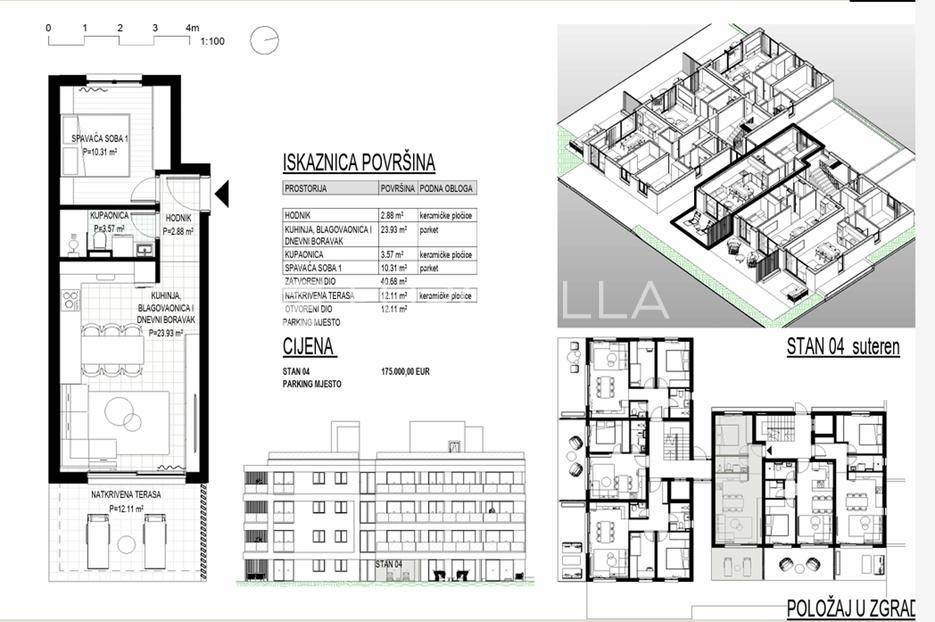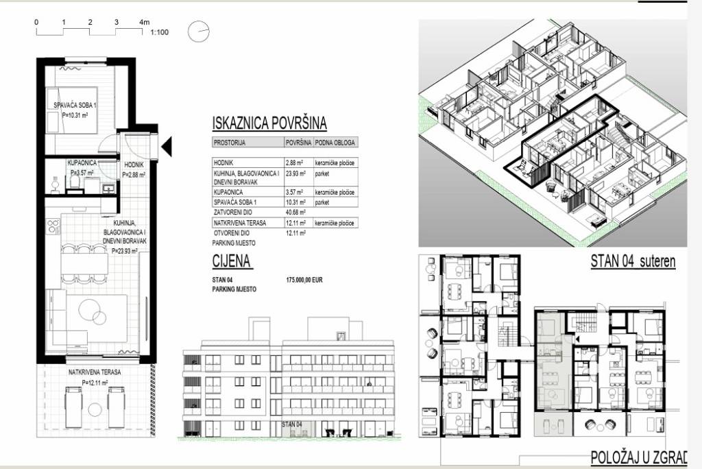 U popularnom odmaralištu srednje Dalmacije, Okrugu Gornjem na Čiovu gradi se stambeni objekta s 24 apartmana na pješačkoj udaljenosti od plaže od 370 m.Objekt se gradi na 5 etaža (jedna podzemna etaža i četiri nadzemne etaže ) uz iskoristivu krovnu terasu koja pripada stanovima na zadnjem katu. Objekt će imati lift.Apartman S4 u prizemlju (u projektu označen kao suteren) orijentacije istok se sastoji od ulaznog prostora od 2,8 m2, dnevnog prostora površine 24 m2 (kuhinja, blagovaonica i dnevni boravak), spavaće sobe površine 10 m2, kupaonice površine 3,5 m2 i natkrivene terase površine od 12 m2.Svi apartmani će biti opremljeni podnim grijanjem i klima uređajima u dnevnom prostoru i jednoj spavaćoj sobi a podne obloge će biti od keramičkih pločica prve klase. Prozori će biti od PVC-a s komaricama i roletama na struju a vanjska fasadna izolacija će biti od stiropora debljine 10 cm.U fazi izgradnje još je moguće dogovarati uređenje interijera.Za svaki apartman u prizemlju je predviđeno jedno vanjsko parking mjesto.Očekivani početak radova je ljeto 2026 godine a useljenje početak 2028 godine. Trenutačno se primaju rezervacije a nakon početka radova potpisuje se predugovor.Način plaćanja: rezervacija min 5.000 eura / 30 % prilikom potpisa predugovora / 30 % nakon završetka konstrukcijskih radova / 15 % nakon završetka fasade / 15 % nakon završetka unutrašnjosti / 10 % nakon ishođenja uporabne dozvole.Kako je otok Čiovo svojevrstan produžetak grada Trogira, nudi pregršt mogućnosti za odmor, rekreaciju i kupanje te razgledavanje mnogobrojnih povijesnih spomenika.