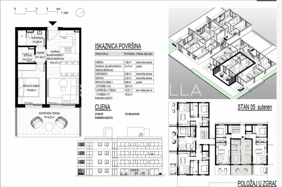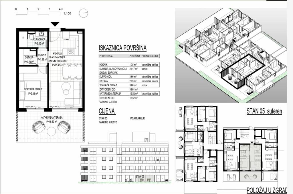 U popularnom odmaralištu srednje Dalmacije, Okrugu Gornjem na Čiovu gradi se stambeni objekta s 24 apartmana na pješačkoj udaljenosti od plaže od 370 m.Objekt se gradi na 5 etaža (jedna podzemna etaža i četiri nadzemne etaže ) uz iskoristivu krovnu terasu koja pripada stanovima na zadnjem katu. Objekt će imati lift.Apartman S5 u prizemlju (u projektu označen kao suteren) orijentacije istok se sastoji od ulaznog prostora od 1,4 m2, dnevnog prostora površine 21,5 m2 (kuhinja, blagovaonica i dnevni boravak), spavaće sobe površine 10 m2, ostave površine 2 m2, kupaonice površine 3,5 m2 i natkrivene terase površine od 16,5 m2.Svi apartmani će biti opremljeni podnim grijanjem i klima uređajima u dnevnom prostoru i jednoj spavaćoj sobi a podne obloge će biti od keramičkih pločica prve klase. Prozori će biti od PVC-a s komaricama i roletama na struju a vanjska fasadna izolacija će biti od stiropora debljine 10 cm.U fazi izgradnje još je moguće dogovarati uređenje interijera.Za svaki apartman u prizemlju je predviđeno jedno vanjsko parking mjesto.Očekivani početak radova je ljeto 2026 godine a useljenje početak 2028 godine. Trenutačno se primaju rezervacije a nakon početka radova potpisuje se predugovor.Način plaćanja: rezervacija min 5.000 eura / 30 % prilikom potpisa predugovora / 30 % nakon završetka konstrukcijskih radova / 15 % nakon završetka fasade / 15 % nakon završetka unutrašnjosti / 10 % nakon ishođenja uporabne dozvole.Kako je otok Čiovo svojevrstan produžetak grada Trogira, nudi pregršt mogućnosti za odmor, rekreaciju i kupanje te razgledavanje mnogobrojnih povijesnih spomenika.