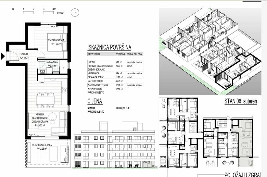 U popularnom odmaralištu srednje Dalmacije, Okrugu Gornjem na Čiovu gradi se stambeni objekta s 24 apartmana na pješačkoj udaljenosti od plaže od 370 m.Objekt se gradi na 5 etaža (jedna podzemna etaža i četiri nadzemne etaže ) uz iskoristivu krovnu terasu koja pripada stanovima na zadnjem katu. Objekt će imati lift.Apartman S6 u prizemlju (u projektu označen kao suteren) orijentacije istok se sastoji od ulaznog prostora od 5,5 m2, dnevnog prostora površine 24 m2 (kuhinja, blagovaonica i dnevni boravak), spavaće sobe površine 12 m2, kupaonice površine 3,8 m2 i natkrivene terase površine od 12,2 m2.Svi apartmani će biti opremljeni podnim grijanjem i klima uređajima u dnevnom prostoru i jednoj spavaćoj sobi a podne obloge će biti od keramičkih pločica prve klase. Prozori će biti od PVC-a s komaricama i roletama na struju a vanjska fasadna izolacija će biti od stiropora debljine 10 cm.U fazi izgradnje još je moguće dogovarati uređenje interijera.Za svaki apartman u prizemlju je predviđeno jedno vanjsko parking mjesto.Očekivani početak radova je ljeto 2026 godine a useljenje početak 2028 godine. Trenutačno se primaju rezervacije a nakon početka radova potpisuje se predugovor.Način plaćanja: rezervacija min 5.000 eura / 30 % prilikom potpisa predugovora / 30 % nakon završetka konstrukcijskih radova / 15 % nakon završetka fasade / 15 % nakon završetka unutrašnjosti / 10 % nakon ishođenja uporabne dozvole.Kako je otok Čiovo svojevrstan produžetak grada Trogira, nudi pregršt mogućnosti za odmor, rekreaciju i kupanje te razgledavanje mnogobrojnih povijesnih spomenika.