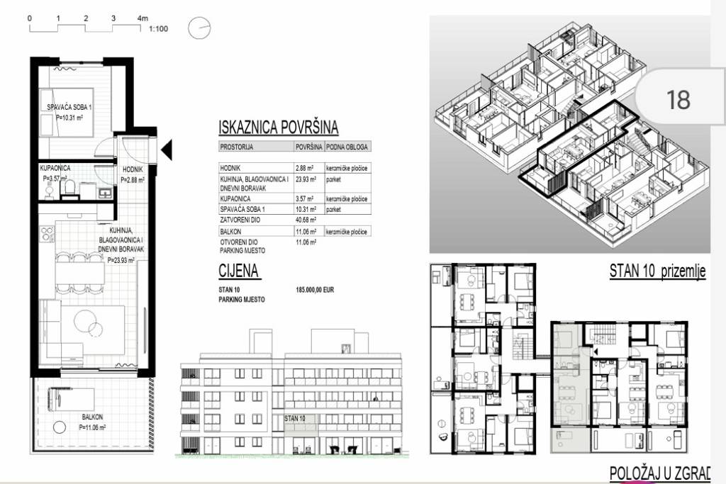 U popularnom odmaralištu srednje Dalmacije, Okrugu Gornjem na Čiovu gradi se stambeni objekta s 24 apartmana na pješačkoj udaljenosti od plaže od 370 m.Objekt se gradi na 5 etaža (jedna podzemna etaža i četiri nadzemne etaže ) uz iskoristivu krovnu terasu koja pripada stanovima na zadnjem katu. Objekt će imati lift.Apartman S10 na prvom katu (u projektu označen kao prizemlje) orijentacije istok se sastoji od ulaznog prostora površine 2,8 m2, dnevnog prostora površine 24 m2 (kuhinja, blagovaonica i dnevni boravak), spavaće sobe površine 10 m2, kupaonice površine 3,6 m2 i natkrivene terase površine od 11 m2.Svi apartmani će biti opremljeni podnim grijanjem i klima uređajima u dnevnom prostoru i jednoj spavaćoj sobi a podne obloge će biti od keramičkih pločica prve klase. Prozori će biti od PVC-a s komaricama i roletama na struju a vanjska fasadna izolacija će biti od stiropora debljine 10 cm.U fazi izgradnje još je moguće dogovarati uređenje interijera.Apartmanu S10 pripada vanjsko parking mjesto.Očekivani početak radova je ljeto 2026 godine a useljenje početak 2028 godine. Trenutačno se primaju rezervacije a nakon početka radova potpisuje se predugovor.Način plaćanja: rezervacija min 5.000 eura / 30 % prilikom potpisa predugovora / 30 % nakon završetka konstrukcijskih radova / 15 % nakon završetka fasade / 15 % nakon završetka unutrašnjosti / 10 % nakon ishođenja uporabne dozvole.Kako je otok Čiovo svojevrstan produžetak grada Trogira, nudi pregršt mogućnosti za odmor, rekreaciju i kupanje te razgledavanje mnogobrojnih povijesnih spomenika.