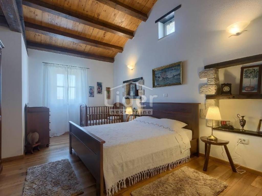 Near Tinjan, we are selling a beautiful stone villa with a swimming pool, of exceptional construction quality, indigenous elements of construction were used: dry stone walls, wooden beams, shutters, slates on the floor around the pool, covered terrace for "al fresco" dining.