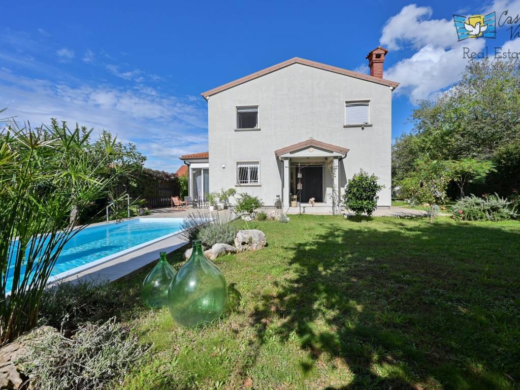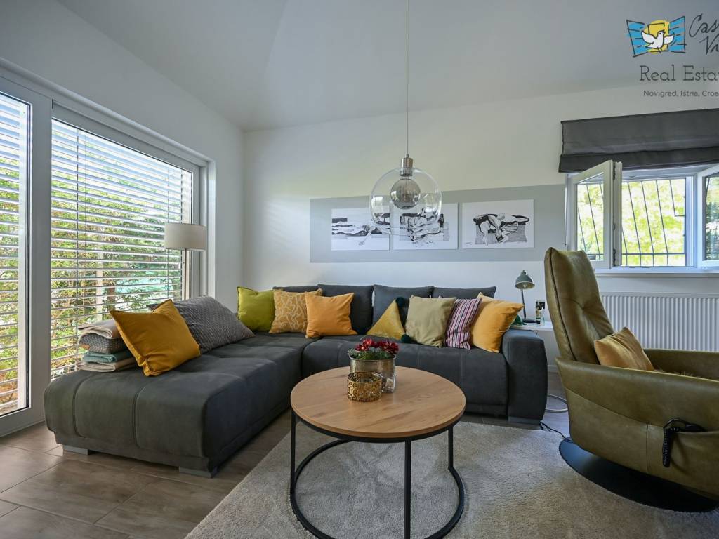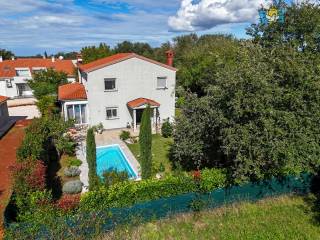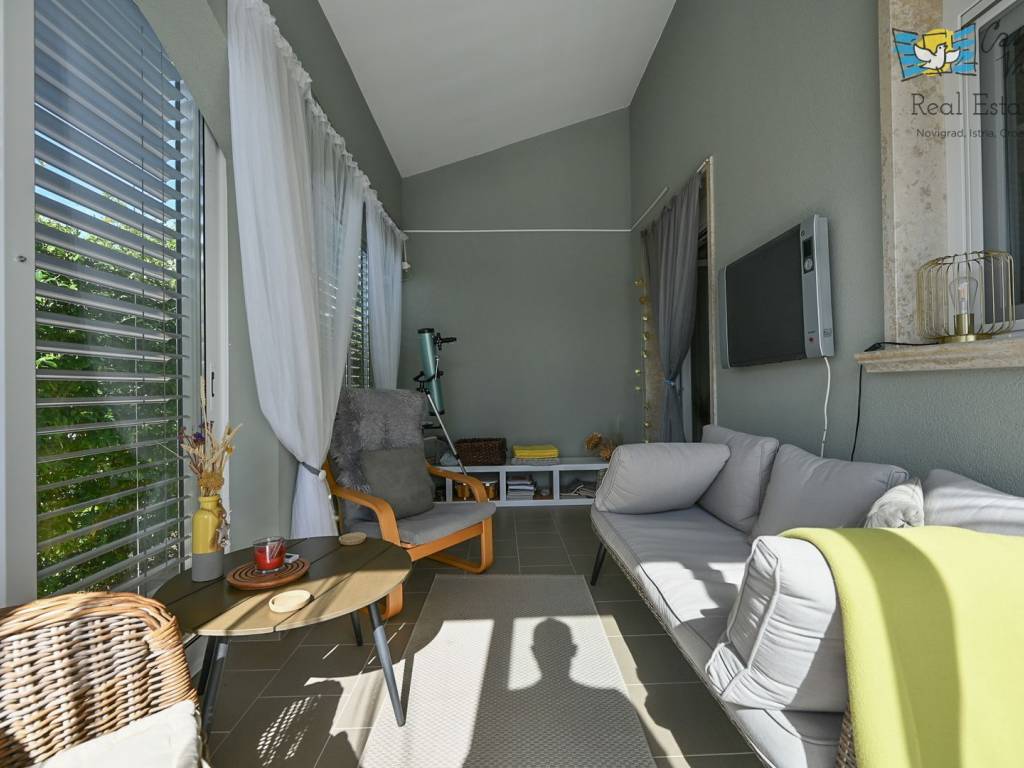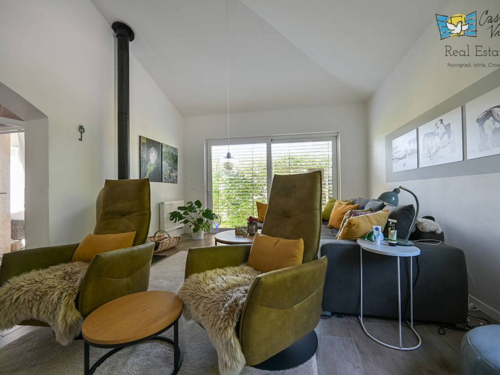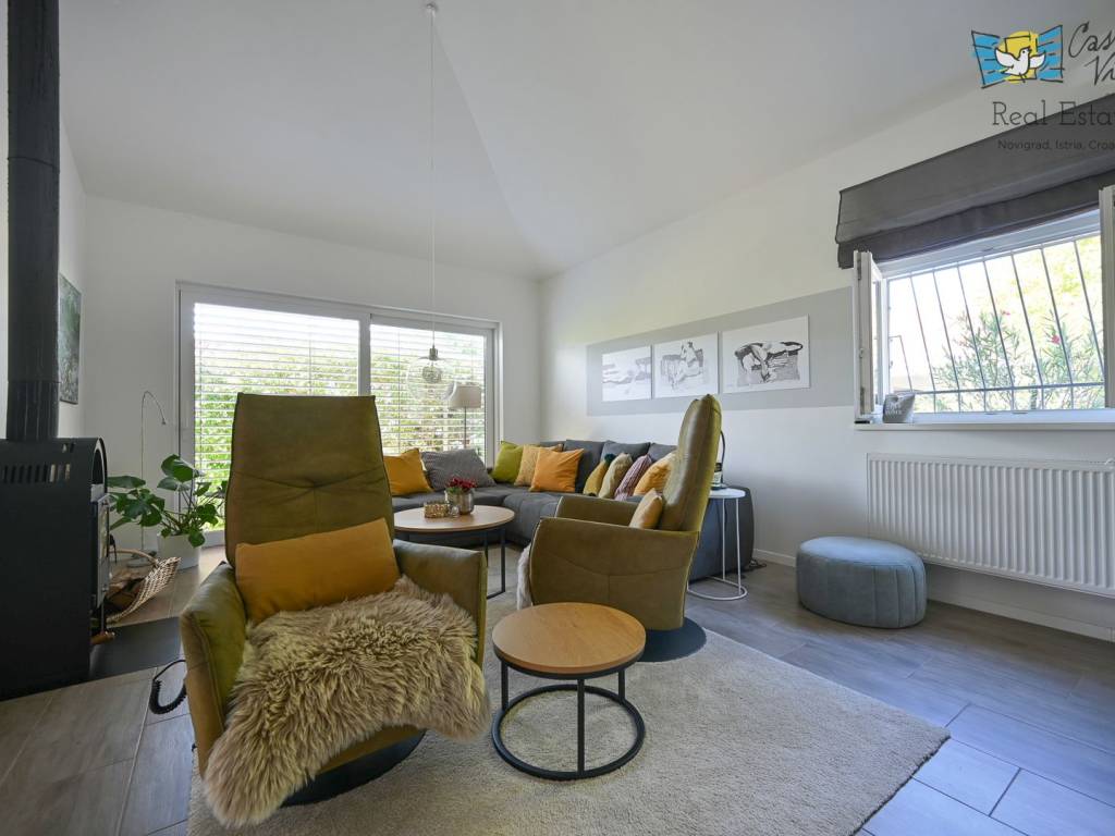 A detached house with a surface area of 166 m2 is for sale, located in a quiet part of Lovrečica near Umag, on a spacious plot of 791 m2. This property was built in 2019 and features modern architectural solutions, high-quality construction, and a carefully landscaped yard.