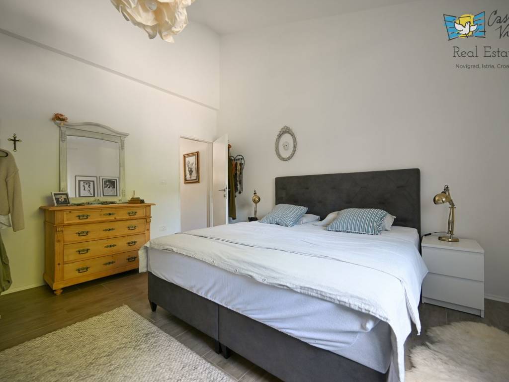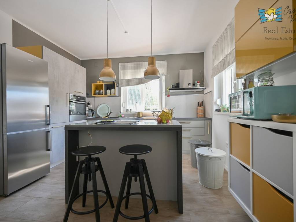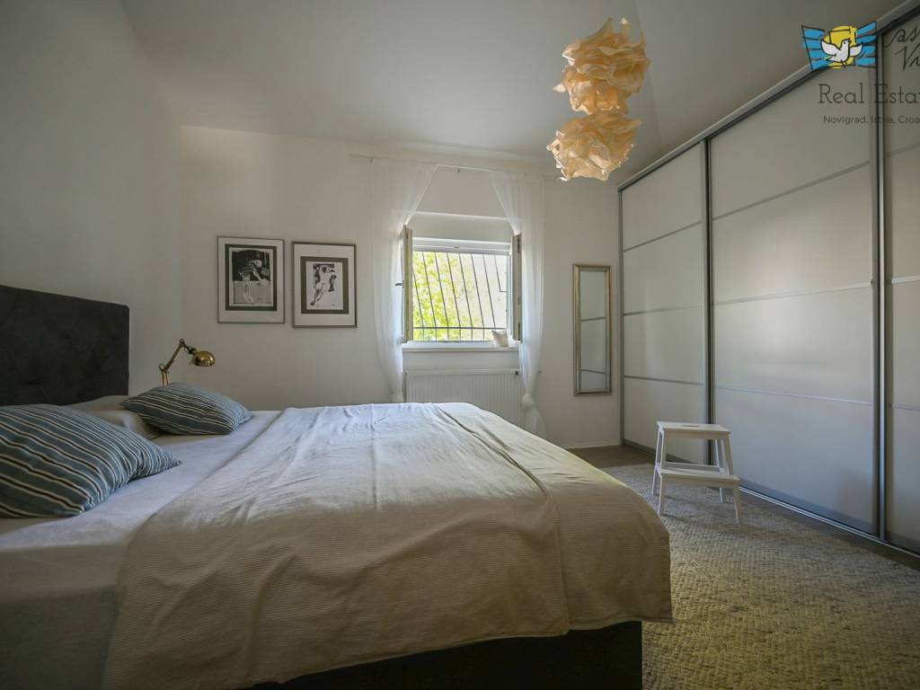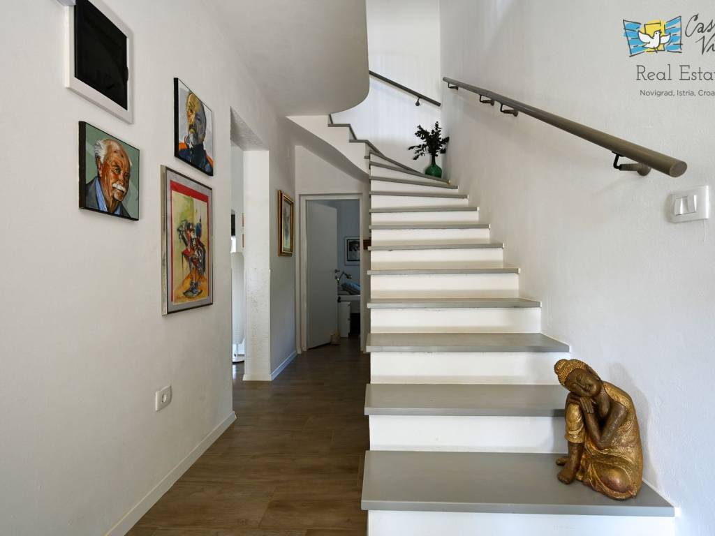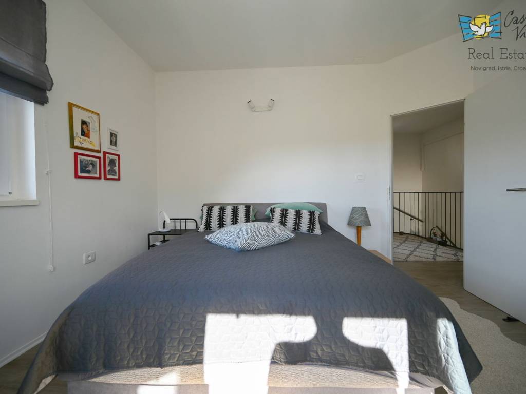 A detached house with a surface area of 166 m2 is for sale, located in a quiet part of Lovrečica near Umag, on a spacious plot of 791 m2. This property was built in 2019 and features modern architectural solutions, high-quality construction, and a carefully landscaped yard.