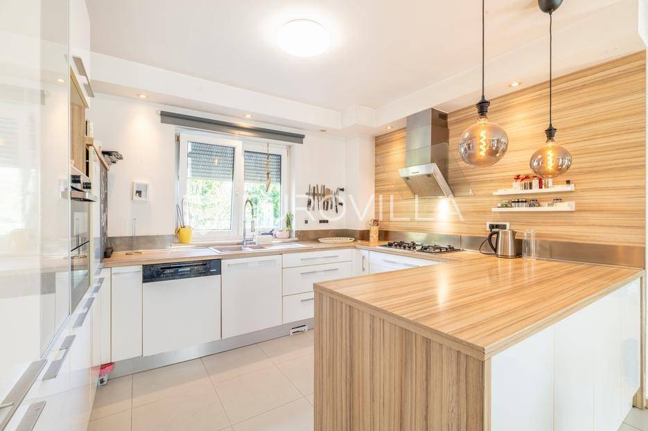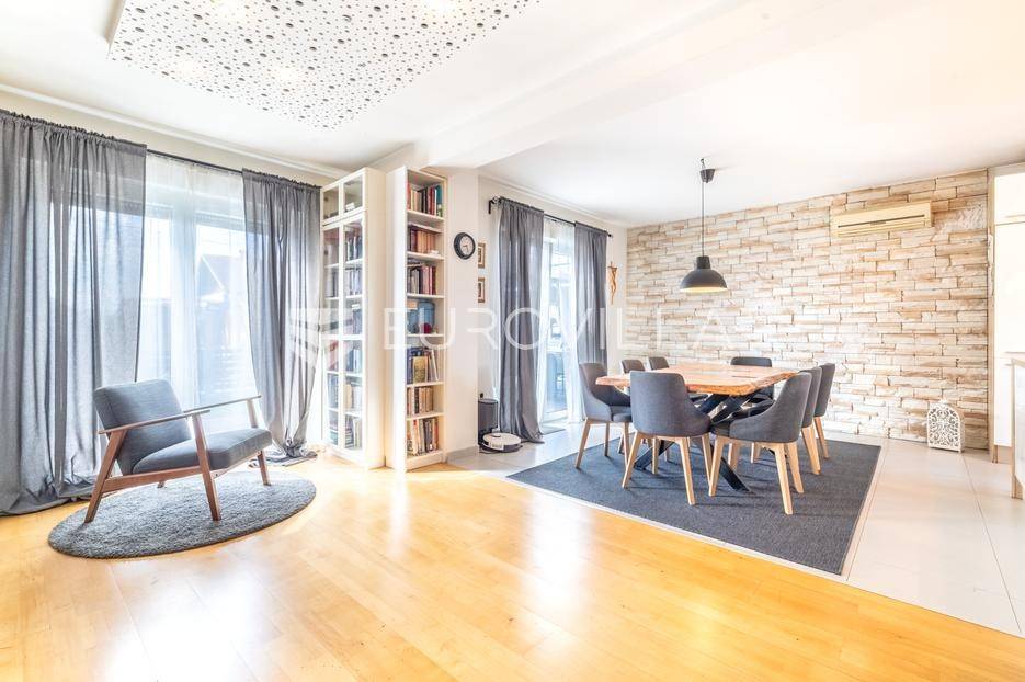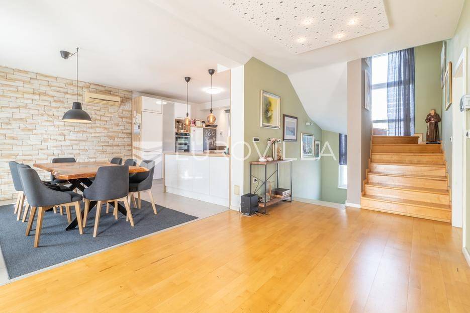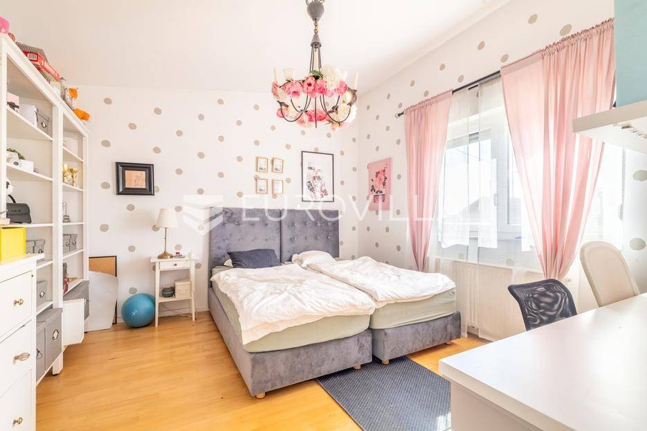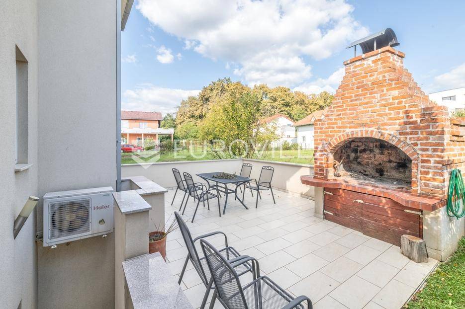 Gornja Dubrava, Branovečina, obiteljska kuća površine 210 m², na zemljištu od 300 m², projektirana je s naglaskom na funkcionalnost, komfor i kvalitetu života.Kuća se nalazi u mirnom obiteljskom okruženju, uz izvrsnu prometnu povezanost. Autobusna stanica udaljena je svega 5 minuta hoda, dok se škola i vrtić nalaze na 5 minuta vožnje. Lokacija omogućuje mirno stanovanje, a istovremeno blizinu svih ključnih sadržaja.Podrum: garaža, špajza, vešeraj, soba za goste s vlastitim WC-om i tušem Prizemlje: otvoren i svijetao dnevni boravak integriran s blagovaonicom i modernom kuhinjom, dodatni WC za goste. Prvi kat: tri prostrane spavaće sobe, kupaonica, balkon. Uređen vrt s drvenom terasom i zelenim površinama.Terasa s zidanim roštiljem u stražnjem djelu dvorišta, električne rolete, u kuhinji centralni usisavač, podno grijanje u kuhinji i kupaonici laundry chute (cijevi za rublje) plinsko grijanje većina namještaja uključena A1 optički internet vanjski namještaj i šator uključeni.Ova nekretnina predstavlja savršenu priliku za dugoročan obiteljski život u mirnom i sigurnom okruženju. Visok standard opreme, promišljen raspored prostora i ugodna okućnica čine ovu kuću idealnim izborom za klijente koji traže udoban i kvalitetan dom.Za sve dodatne informacije, detalje najma ili dogovor termina razgledavanja, stojimo Vam na raspolaganju.