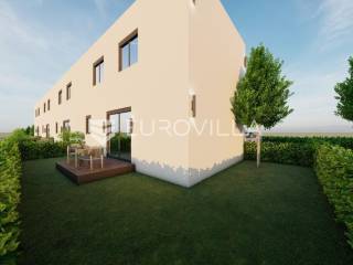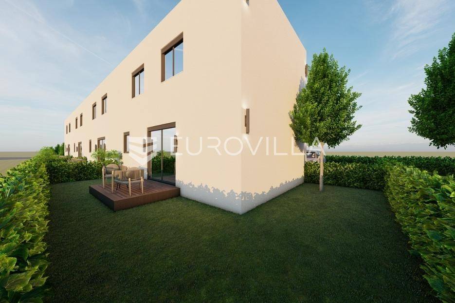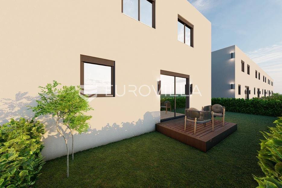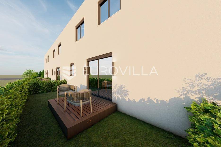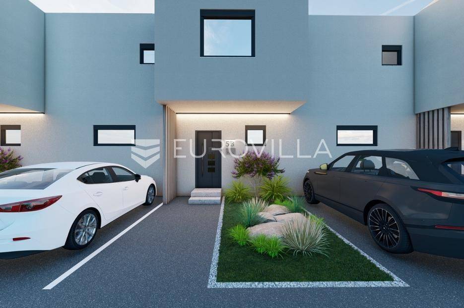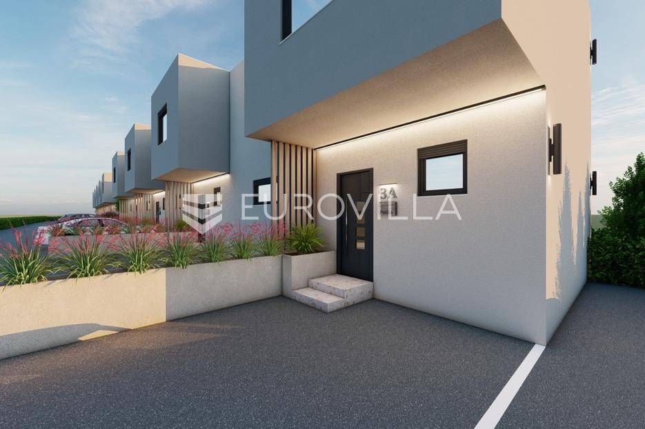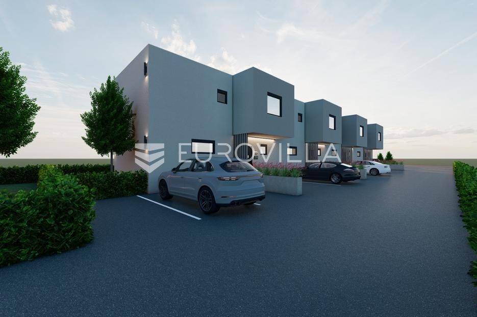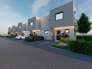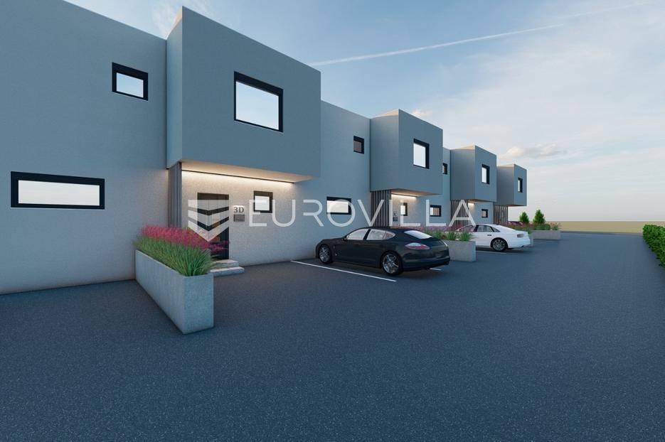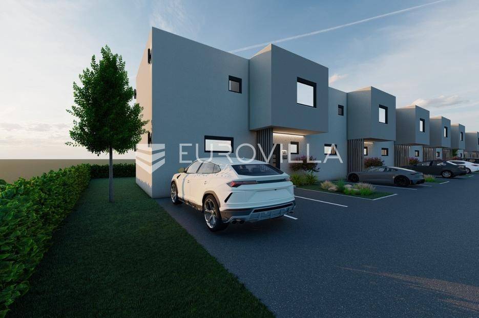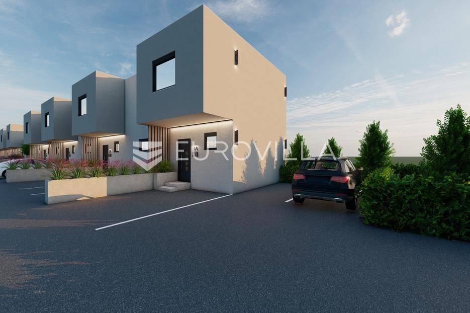 Zagreb, BREZOVICA, nadomak svih urbanih sadržaja, u mirnom, obiteljskom naselju, prodaje se dvoetažna kuća u nizu, NKP 92,09 m2, s privatnim vrtom veličine 64 m2 (6,4) i dva parkirna mjesta.Kuća oznake S7, u nizu od ukupno 9 kuća, proteže se na dvije etaže.PRIZEMLJE: ulazni prostor (2,55 m2), wc (2,85 m2) i prostrani open space dnevni boravak s kuhinjom i blagovaonicom (41,10 m2).KAT: hodnik (5,63), spremište (1,54 m2), spavaća soba (9,07), spavaća soba (9,07), spavaća soba (15,47), te kupaonica (4,81 m2).OPREMA:konstrukcijska cigla, pregradbeni zidovi knauftermo fasada- stiroporPVC stolarija REHAU - vrhunska njemačka kvaliteta; izvrsna toplinska i zvučna izolacija, dugotrajnost i otpornost na vremenske uvjete, kvalitetni okovi i moderan dizajntroslojno staklo + električne roletedizalica topline, podno grijanje u dnevnom boravkupločice 1. klase u kupaonici, parket u ostatku kućeUdaljena 6 kilometara od Arena centra, a u krugu od 300 metara nalaze se škola, vrtić i dom zdravlja.Za ostale informacije stojimo Vam na raspolaganju.