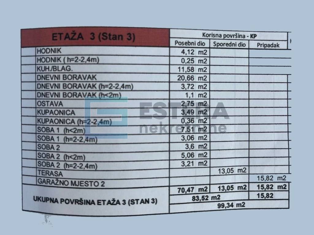 This modern apartment is located on the second floor of a newly built building and presents a perfect opportunity for a peaceful and comfortable lifestyle or seaside vacation. The enclosed living area is 70.47 m2, with a spacious terrace of 13.05 m2 and a garage space of 15.82 m2, with the total area including coefficients being 83.52 m2.