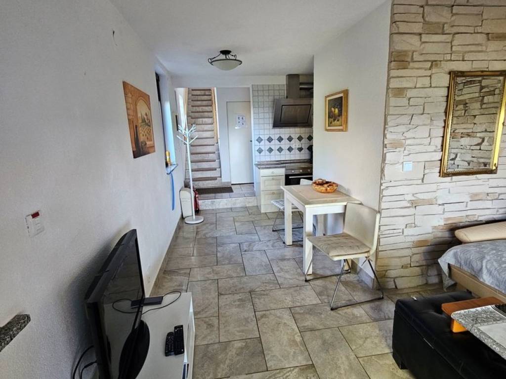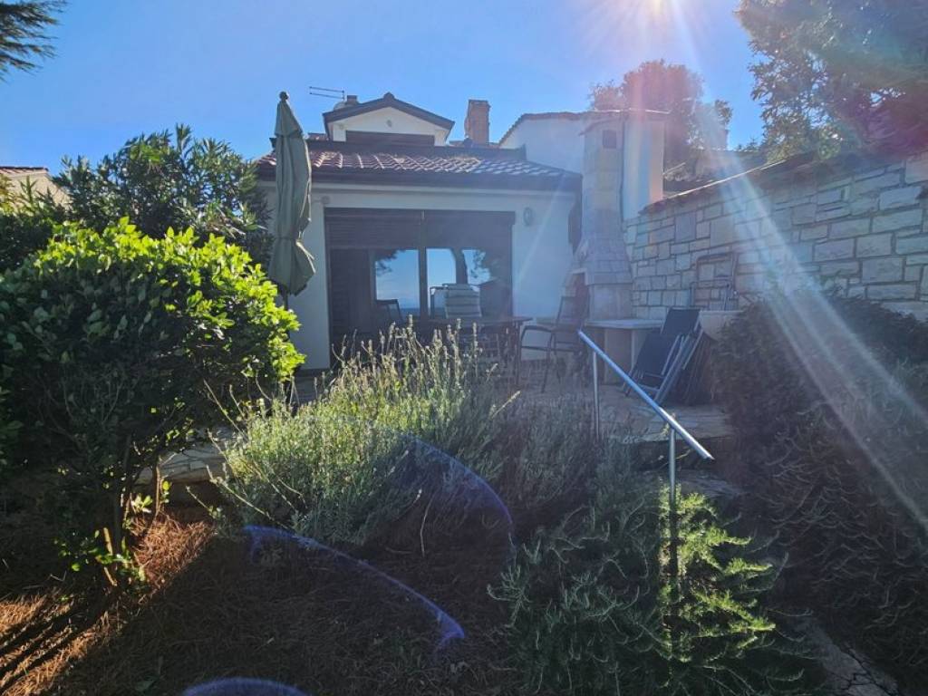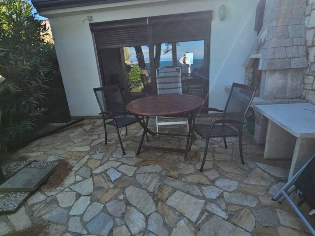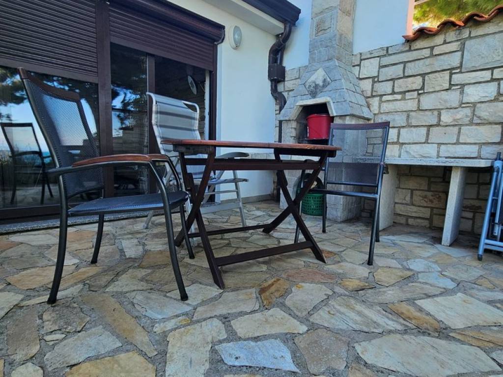 The house has everything you need to turn your stay into enjoyment and relaxation. It consists of a ground floor garage that leads to the residential area where there is an entrance hall, toilet, small kitchen with separate storage room, living room from which you can see the sea. Exit to the terrace where there is a grill fireplace, and exit to the garden.