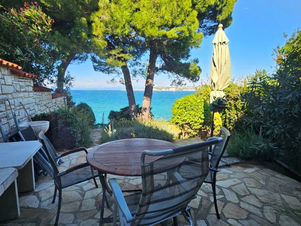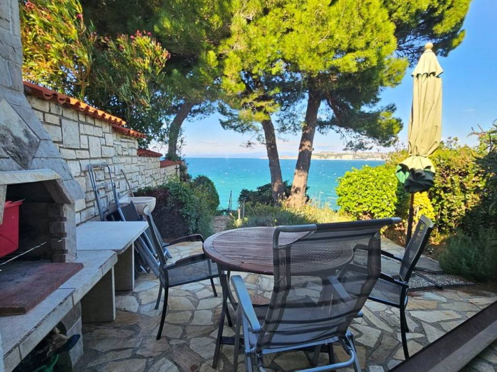 On the very coast, this beautiful little house is located, surrounded by a beautifully landscaped environment, full of greenery, Mediterranean pines and herbs. It is a wonderful feeling to sit on the terrace, listen to the sound of the sea, look at the beautiful blue of the sea and breathe in the scents of pines.