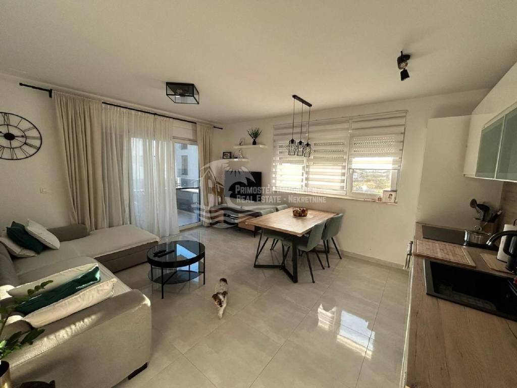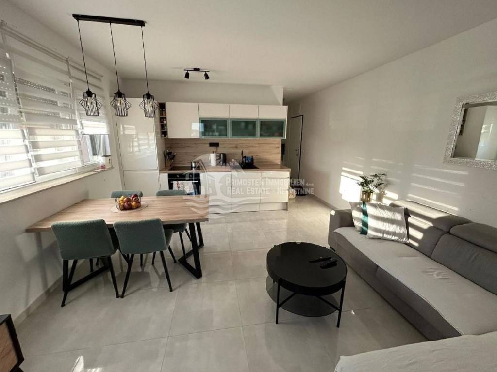 Fully furnished apartment on the second floor in Seget, 300 meters from the sea as the crow flies, and close to all facilities. The apartment is located in a residential building of recent construction, which has an elevator and a shared pool. The living area of ​​the apartment with a balcony is 60 m2. The apartment consists of a hallway, two bedrooms, a bathroom, and a spacious living room with a kitchen. From the living room you can access the balcony with a view of the sea. The apartment has one outdoor parking space.