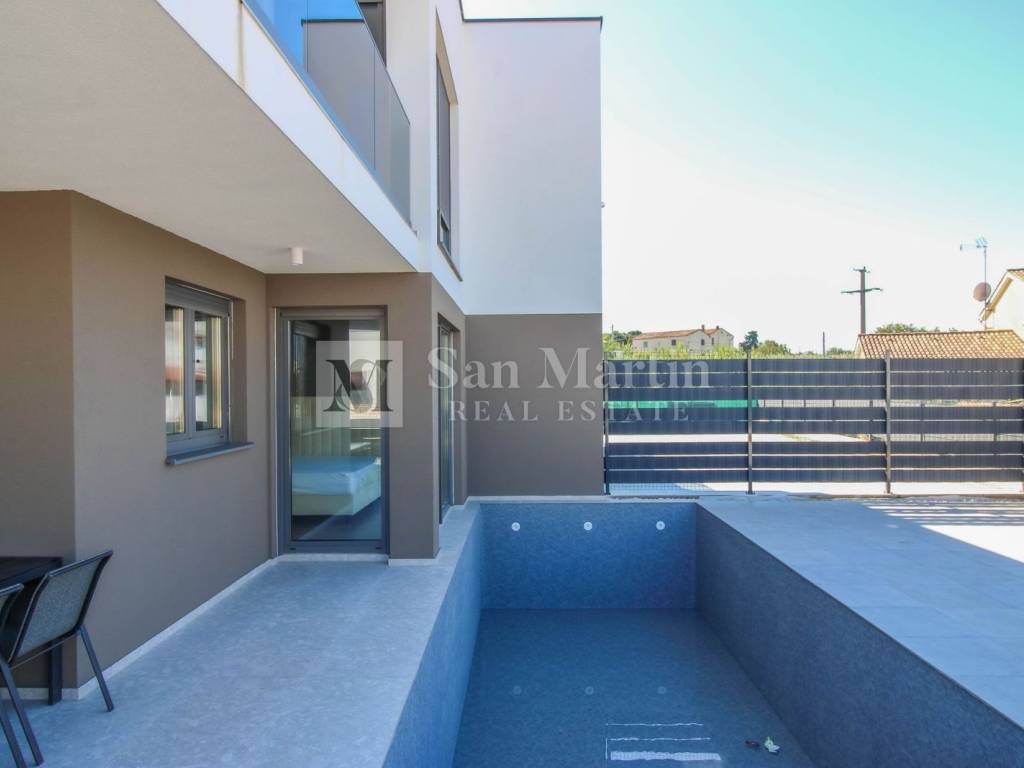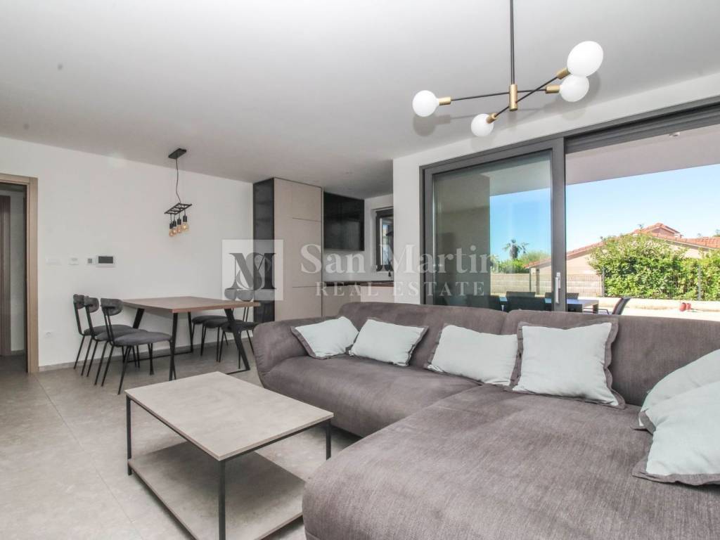 Poreč, surroundings - spacious apartment with rich content in a new building Near the city of Poreč and the sea is a modern apartment for sale in a new building with a lot of content. The apartment is located on the ground floor of a smaller residential building, its total area is 93.32 m2 and consists of an entrance area, living room, open-concept kitchen and dining room, three bedrooms, one of which has its own bathroom, another bathroom and a guest toilet. . The living area of the apartment has access to a covered terrace. The apartment also has a garden of approx. 80m2/100 m2 m2, a storage room in the basement of the building and two parking spaces. This property is a great investment opportunity due to its rich content and quiet location near the sea and the city! ID CODE: 1012 Toni Kristijan Mob: +385 91 556 2470 Tel: +385 91 556 2470 E-mail: toni@sanmartin-realestate.com www.sanmartin-realestate.com