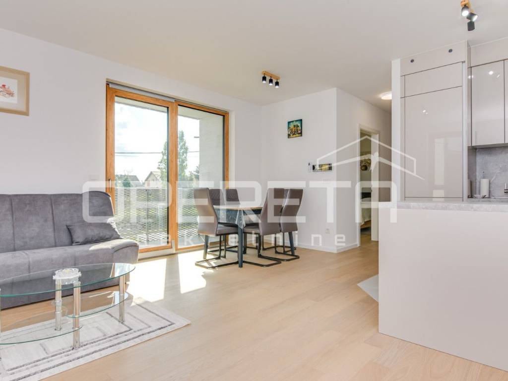 Apartment for rent in a new building in Stenjevac, Dudovec. Two-bedroom apartment on the 1st floor of a building with an elevator and a garage parking space, consisting of a hallway, kitchen, living room and dining room, bathroom, bedroom and balcony.