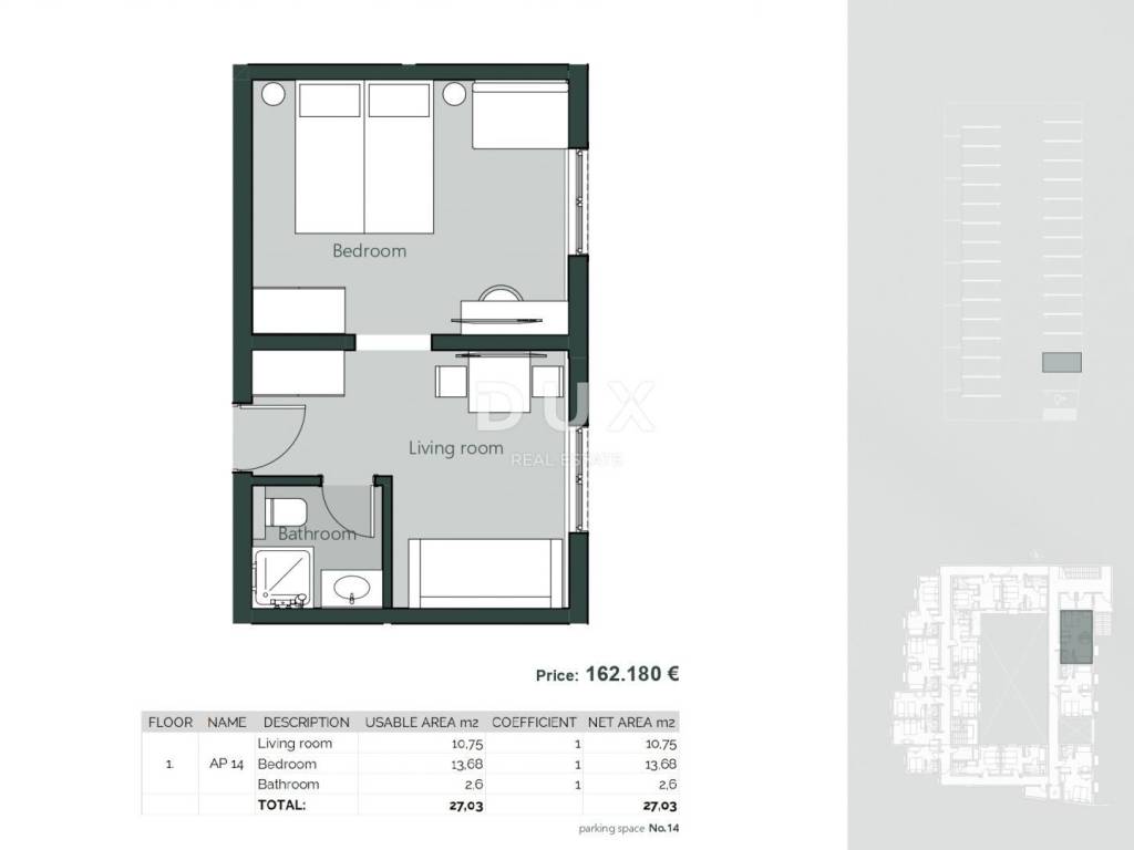 CRIKVENICA - Luxury apartments in a prestigious hotel complex We present you a unique opportunity in Crikvenica - a city with a long tourist tradition and constant growth in demand. We offer a new luxury complex with 30 modernly equipped apartments and hotel rooms ranging in size from 14 to 28 m². This project combines contemporary design, smart technologies and an attractive location, just a few minutes' walk from the sea and the center. Investors are offered a guaranteed annual yield of 5%, with a realistic growth potential of 7–9% thanks to the extended season and professional management. Usage options: Personal use of the apartment or hotel unit Inclusion in the rental system with Full Property Management service (marketing, booking, reception and guest care, maintenance, financial reporting) - a worry-free investment with passive income. Complex facilities: Wellness and spa area with indoor pool, massages and treatments Restaurant and cafe bar on the ground floor 24/7 reception and guest services Parking space option (€20,000) Interiors: Designer doors, Diere security entrance doors, bathrooms with moisture and impact-resistant Kerok furniture, large-format ceramics, matte sanitary ware with gold details, indirect lighting and a smart app-based management system. Location: Crikvenica offers ideal transport connections - close to Rijeka, Zagreb, Istria, the island of Krk with the airport and the A1 motorway. The city is known for its beaches, gastronomy and year-round tourism, which makes it one of the most sought-after destinations in Kvarner. Crikvenica Residence is not just real estate, but an investment in security, stable income and lifestyle. Do not miss the opportunity to become the owner of a part of this prestigious project! Dear clients, the agency commission is charged in accordance with the General Terms and Conditions. https://www.dux-nekretnine.hr/opci-uvjeti-poslovanja ID CODE: 42443 Ivan Vinger Agent s licencom Mob: +385 91 601 3692 Tel: +385 91 480 8808 E-mail: ivan.vinger@dux-nekretnine.hr www.dux-opatija.com