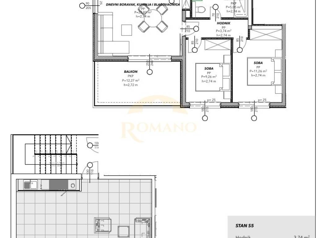 For sale is an apartment on the second floor with a total area of 64 m2 (52 m2 apartment and 12 m2 covered terrace + 60 m2 roof terrace).