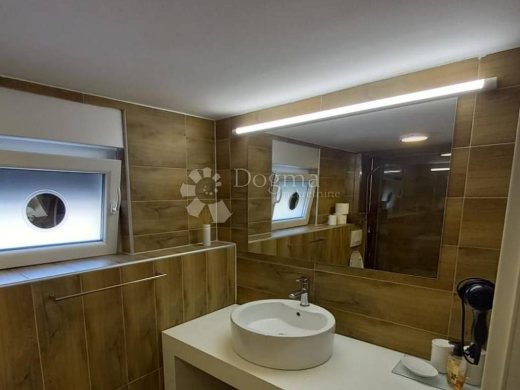In a quiet area near the town of Krk, we are offering a semi-detached house with a swimming pool. The house was completely renovated in 2019 and has a total area of 74.40 m². The basement features one bedroom, a laundry room, and a bathroom. An internal staircase leads to the ground floor, which consists of a kitchen with a dining area and a living room, with access to a beautifully landscaped yard that includes a swimming pool, a sun deck with a stunning lounge set, and a barbecue. From the ground floor, another internal staircase leads to the attic, where a spacious additional bedroom is located. FOR MORE INFORMATION, PLEASE CONTACT: MARINA POLONIJO +385 98 329 462 marina.polonijo@dogma-nekretnine.com ID CODE: 16710 Marina Polonijo Agent s licencom Mob: 098/329-462 Tel: 051/309-092 E-mail: marina.polonijo@dogma-nekretnine.com www.dogma-nekretnine.com