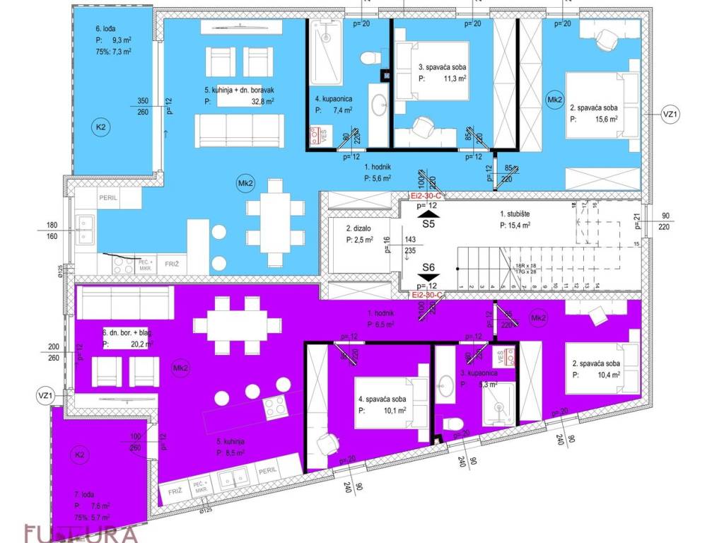 Gledati tlocrt stan oznake S6.