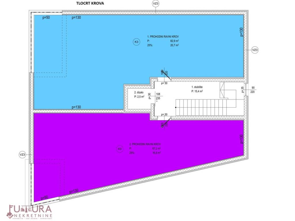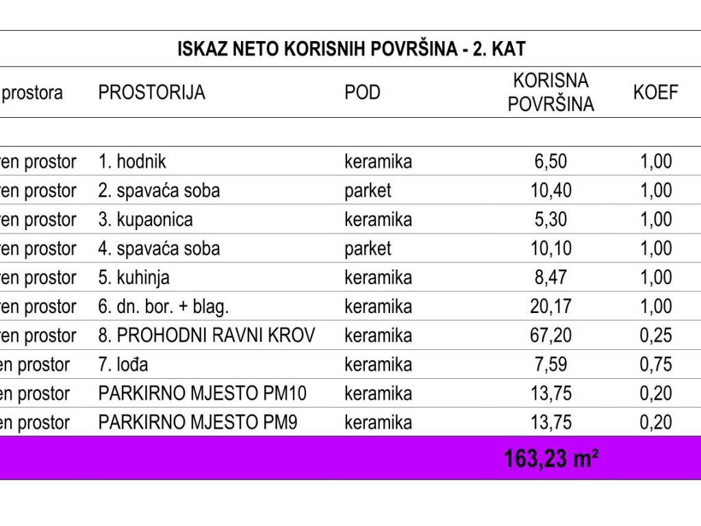Posjeduje dva parkirna mjesta i krovnu terasu od 67,20 m2.