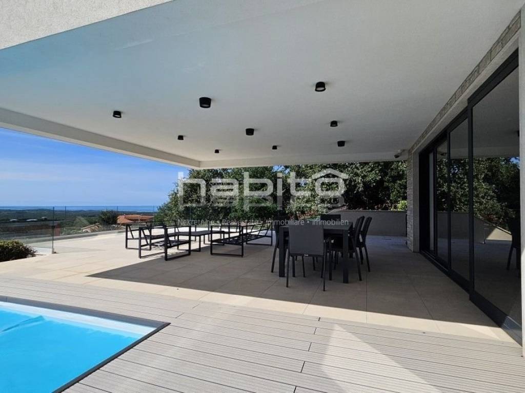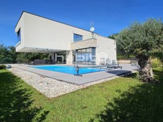 An exclusive, modern villa of 285 m² on a spacious plot of 823 m² is for sale in the peaceful surroundings of Poreč. It's perfectly positioned to enjoy luxury and privacy, located just 7 km from the sea.