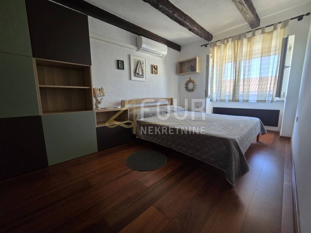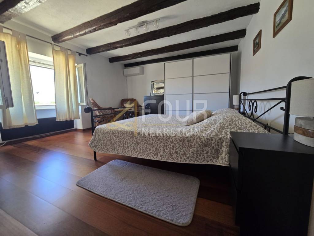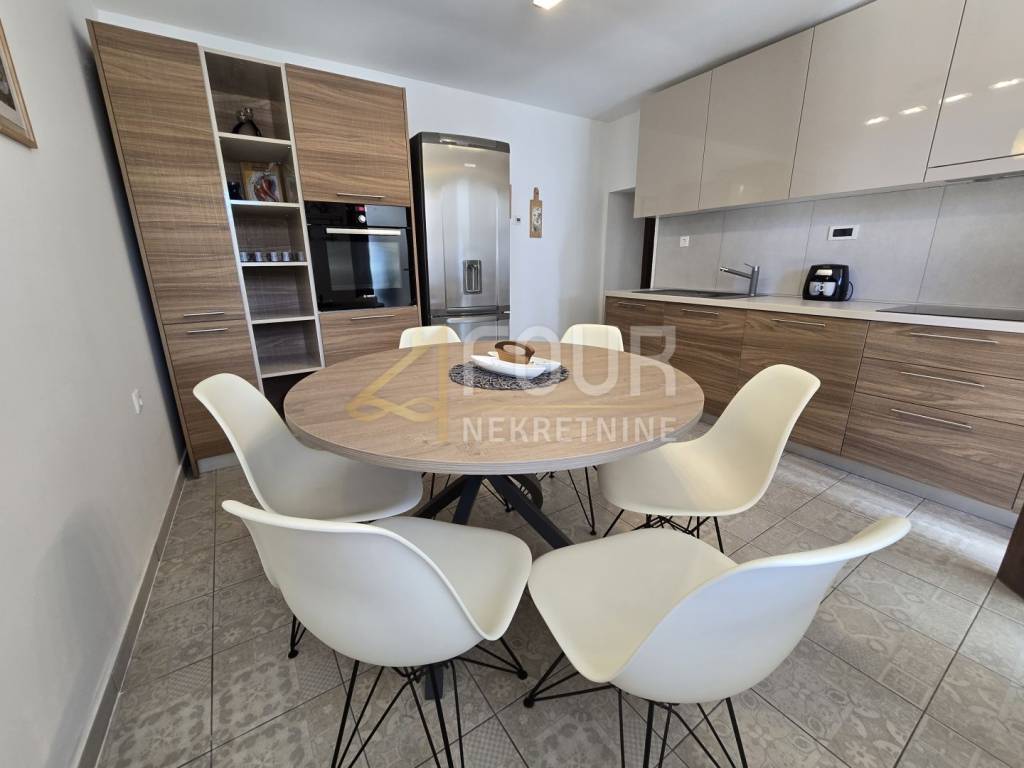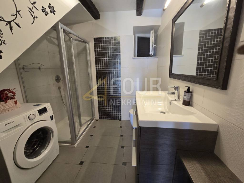 A beautiful semi-detached stone house for sale in a peaceful location in the village of Kras on the island of Krk. The house has been completely renovated, categorized, and is being sold fully furnished. It spreads over two floors with a total living area of 202 m2 and is situated on a plot of 277 m² with a landscaped yard of 176 m².