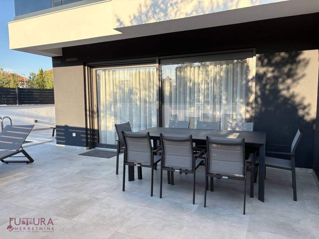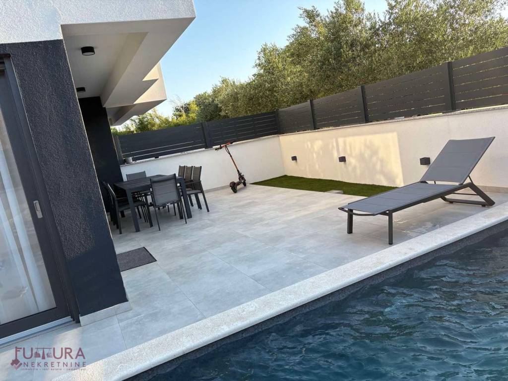 Zadar - Zaton, prodaje se dvojna kuća katnica od 110 m2 stambene površine i 49 m2 okućnice izgrađena 2025 godine, kompletno namještena.