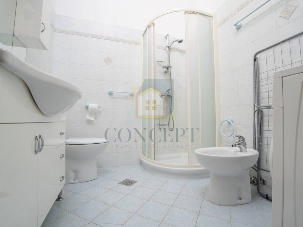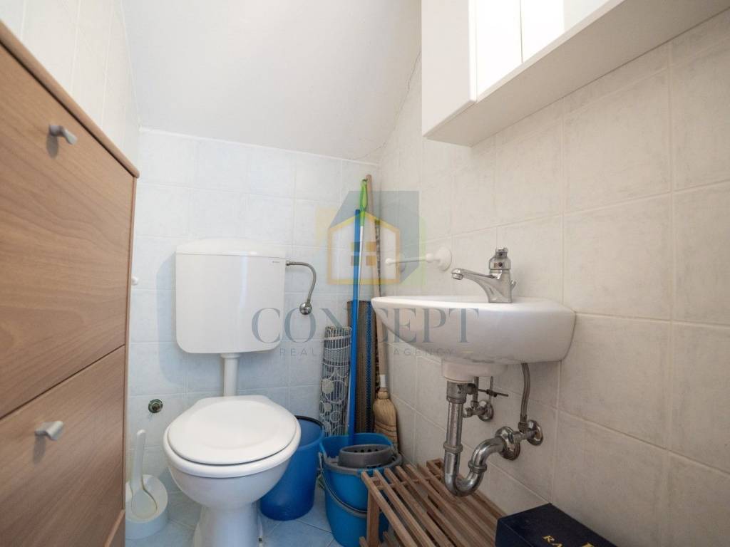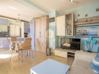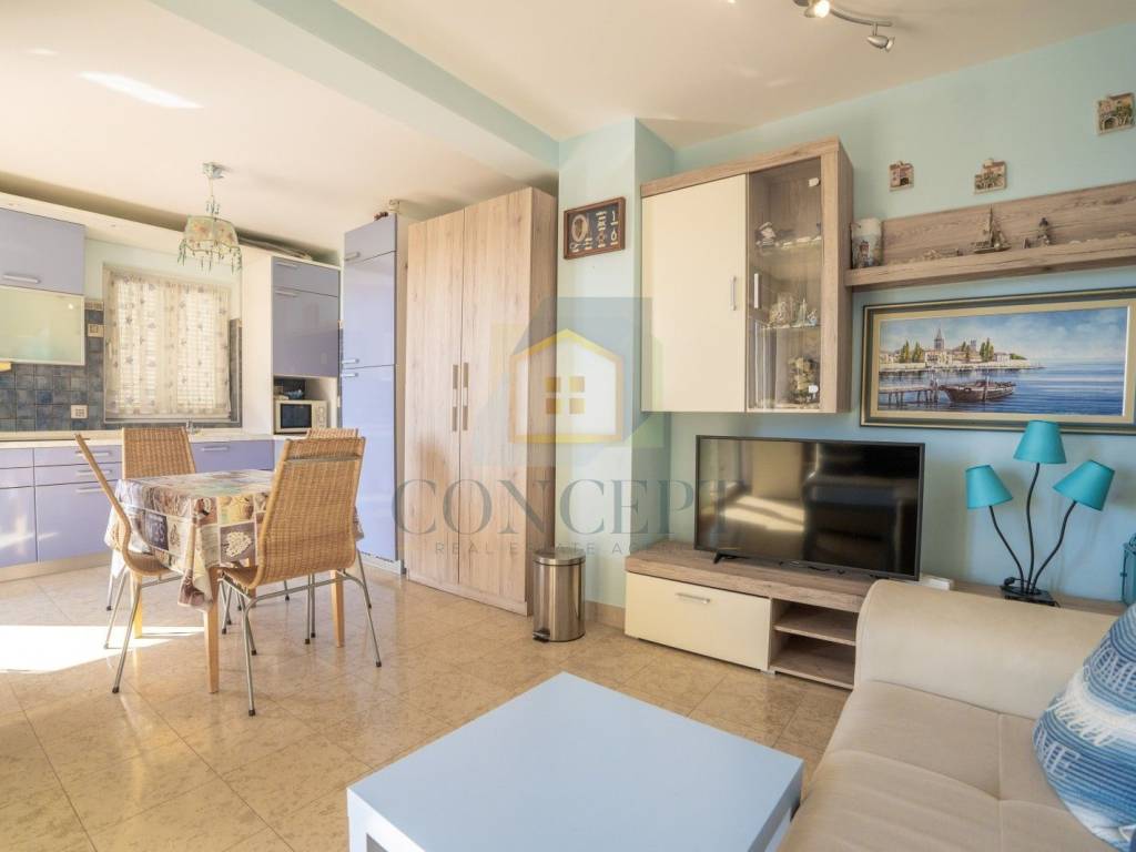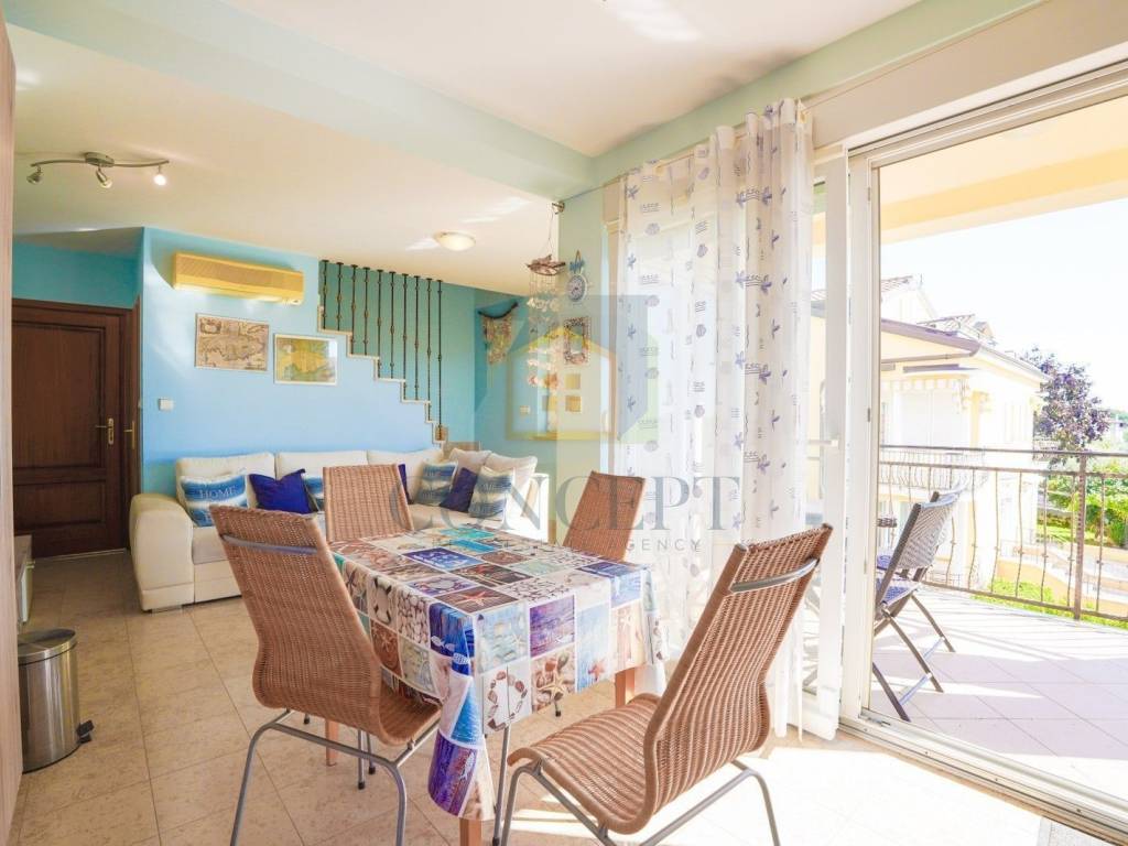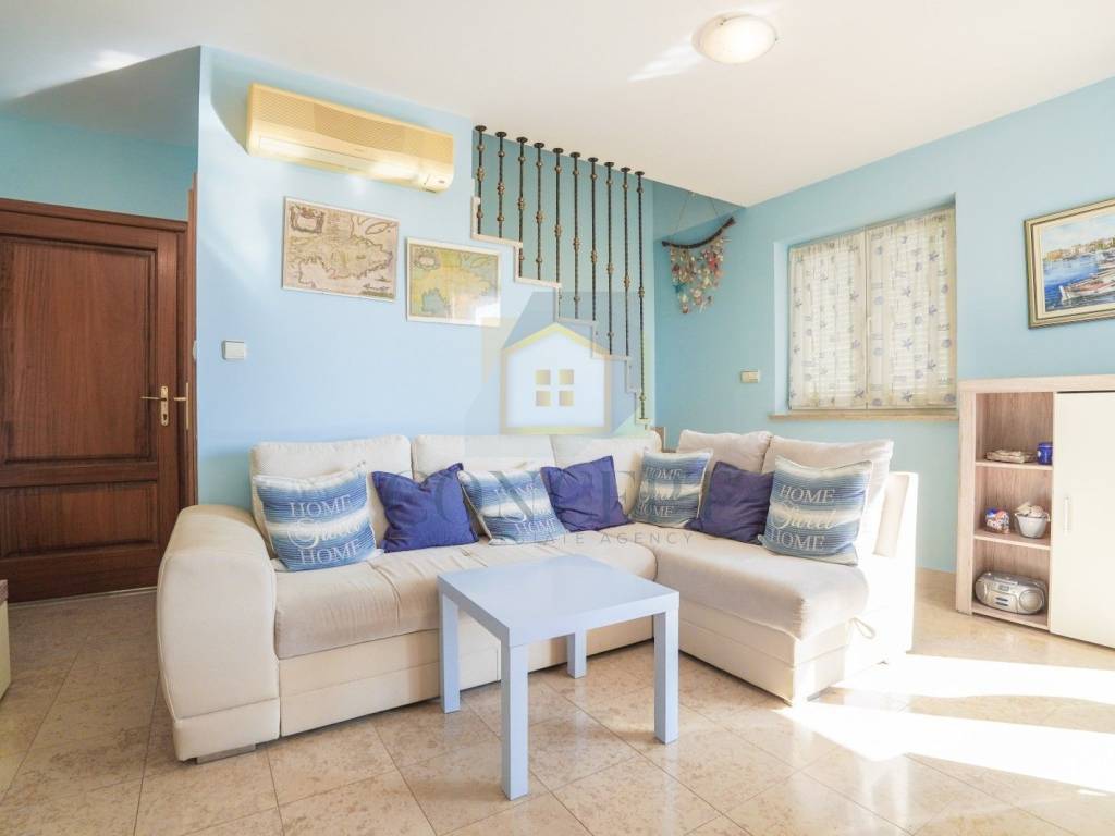 In an excellent location, just 900 m from the sea, a two-level apartment with a total area of 53.52 m² is for sale, situated on the first floor of a residential building.The apartment consists of an entrance hallway, a toilet, an open-plan living room with a kitchen and dining area connected to a covered terrace that offers a partial sea view. An internal staircase leads to the second level of the apartment, where there is a spacious bathroom and a bedroom with access to a terrace that boasts a beautiful open view of the sea.The apartment is equipped with two air conditioning units for heating and cooling. Additionally, it includes a storage room in the basement measuring nearly 7 m² and a parking space in front of the building.For more information and to arrange a viewing, please feel free to contact us.