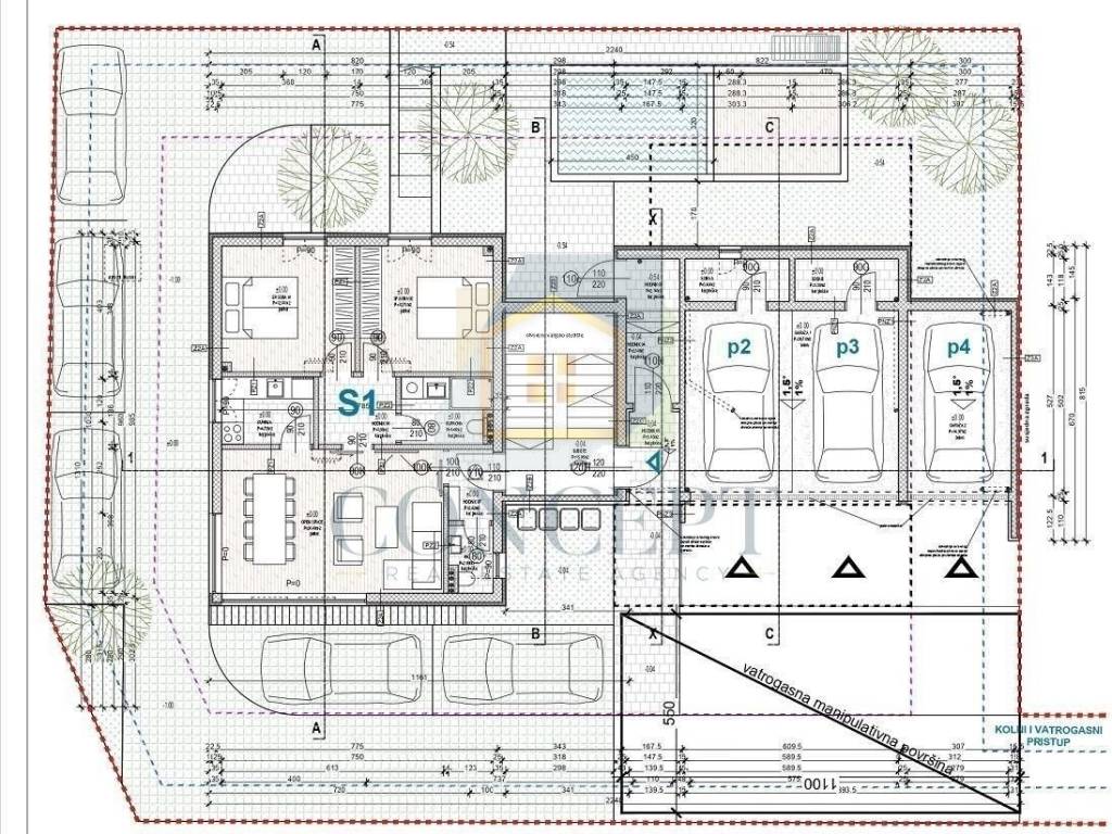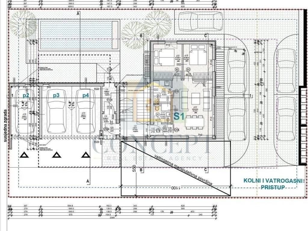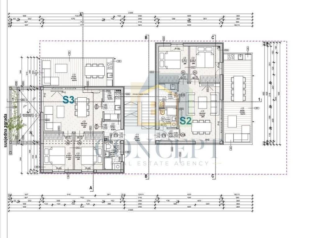 Na odličnoj lokaciji u okolici Poreča, svega 3 km od mora, prodaje se građevinsko zemljište površine 1.239 m² s pravomoćnom građevinskom dozvolom za gradnju dvije zgrade s ukupno 8 stanova i dva bazena.Svi troškovi vezani uz priključke na infrastrukturu, komunalije, doprinose i izradu dozvola su plaćeni. Građevinska bruto površina iznosi 883,16 m².Projekt predviđa dvije zgrade:Prva zgrada sastoji se od 4 stana od približno 55 m². Stanovi imaju terase od 23 m² ili 18 m², dok stan br. 4 ima i krovnu terasu. Ukupna natkrivena površina iznosi 317,99 m², nenatkrivena 144,09 m², a predviđen je i bazen površine 26,24 m².Druga zgrada sastoji se od 4 stana od približno 67 m², svaki s terasom od 18 m². Ukupna natkrivena površina iznosi 392,56 m², nenatkrivena 154,13 m², a predviđen je bazen površine 26,24 m².Obje zgrade imaju podrume s ostavama, garaže za tri automobila, a svakom stanu pripadaju po dva parkirna mjesta. Svakoj zgradi pripada i bazen od oko 26 m², koji se mogu dodijeliti stanovima u prizemlju.Za više informacija i dogovor oko razgleda slobodno nas kontaktirajte.
