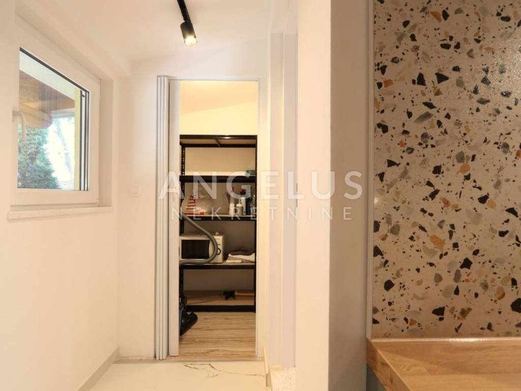 The centerpiece of this property is a landscaped 250 m² yard, which is carefully maintained by the owner. So, you don't have to worry about grass or flowers - just enjoy it. There are also two garden sheds in the garden, perfect for storing bicycles, scooters or other equipment. There is also a wooden canopy with a fireplace in the garden where you can spend evenings with the sound of crickets and the smell of the sea. One parking space is provided in the yard.