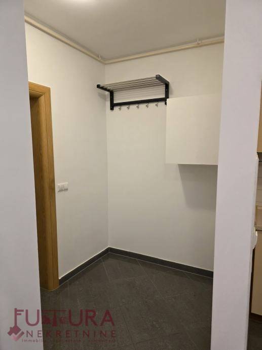 Stan ima izvrsno iskorišten raspored – svijetli dnevni boravak povezan s kuhinjom i blagovaonicom, spavaću sobu, kupaonicu s kadom te loggiu koja stanu daje dodatnu vrijednost. Interijer je moderno uređen i opremljen svim potrebnim uređajima (perilica rublja, hladnjak, pećnica, TV, klima).