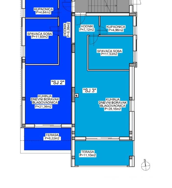 Vodice - Residential unit SJ3 for sale on the raised ground floor of the building, with a total usable area of 81.11 m2 (net area 66.90 m2).