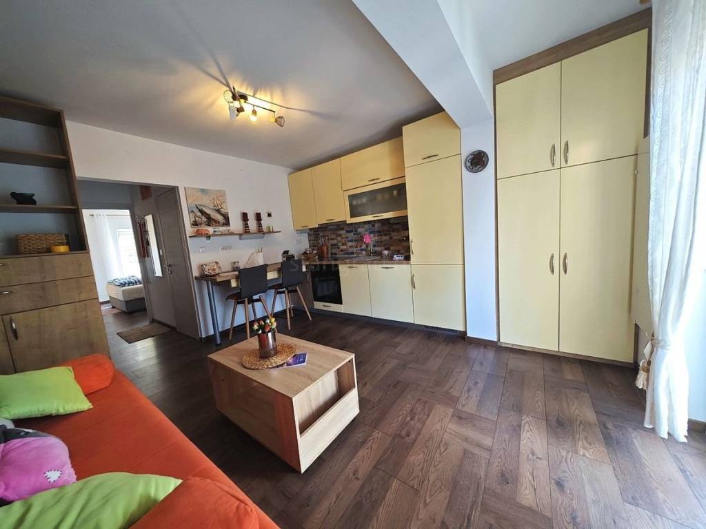 Located on the 1st floor of a well-built and high-quality building, the apartment has a total area of 53 m². The layout includes an entrance hall, a living room with a kitchen and dining area, a bedroom, a bathroom, and a covered terrace. The interior of the property is well maintained and comes fully equipped with all necessary appliances and quality furniture.