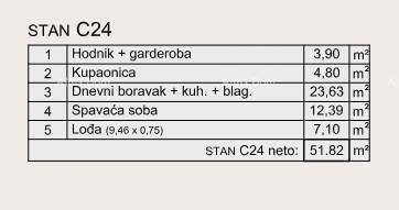 Luxury apartments with a view of Marina Veruda!Apartment C24, with an area of ​​51.82 m2, is located in building C.The apartment is located on the 3rd floor of the building and consists of a hallway with a wardrobe, a living room with a kitchen and a dining room, a bedroom, a bathroom and a loggia.The apartments are sold on a turnkey basis with a fully furnished bathroom (furniture and sanitary ware), flooring in all rooms (1st class ceramics, laminate), with electrical installations, built-in air conditioning, interior joinery, exterior PVC or ALU joinery, burglar-proof and fire-resistant entrance doors, an antenna system, a UTP network, and white walls and ceilings.A garage space and a storage room of 3.2 m2 can be purchased with the apartment, which are charged additionally.The price of the garage space is 35,000 euros.Note: VAT is included in the price.For further information, please contact:Azra+385 91 6115706+385 98 420885azra@almadominvest.com