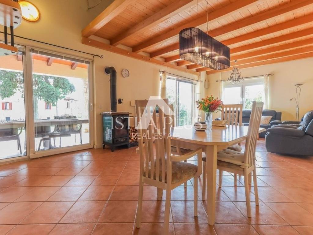 Parking Spaces2Single-story house with sea view, 10 km from PorečHouse Freestanding for sale, Poreč, 380 000 €For sale – Spacious ground floor house with swimming pool, additional apartment and sea view.A beautiful ground floor house of 170 m2 with an additional studio apartment of 25 m2 is for sale, ideal for family life or tourist rental.The main house consists of:- 3 comfortable bedrooms.- 2 bathrooms.- Spacious living room- Fully equipped kitchen with pantry.- Terraces with sea view- Summer kitchen on the terrace, perfect for enjoying warm evenings.On the gallery there are 2 additional bedrooms, 1 bathroom.In the garden there is a 45 m2 swimming pool, ideal for relaxing and socializing.A studio apartment separate from the main house offers additional space for guests.Heating is provided by air conditioning and pellet stoves, which ensures a pleasant temperature throughout the year.A perfect property for living or investment, with lots of amenities.For more information or to arrange a viewing, please feel free to contact us.