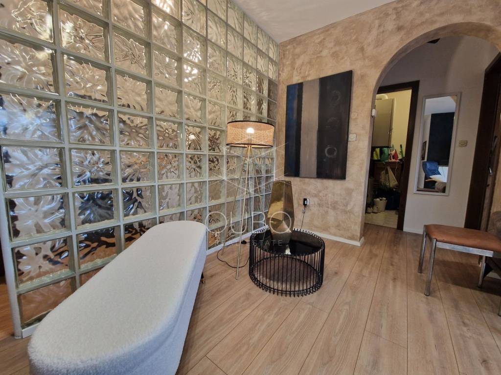 Located on the third floor of a well-maintained residential building with both stair and elevator access, this 60 m² apartment reveals a refined interior where every detail serves a purpose. The microtopping wall finish gives the space a distinctive tactile depth, adding a note of quiet luxury and timeless style.