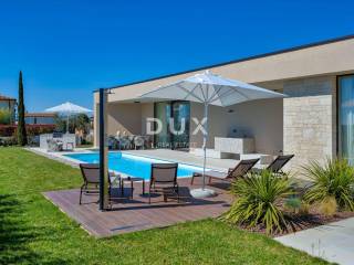 ISTRIA, POREČ - Luxury house with swimming pool on the edge of the village Bathed in a pleasant Mediterranean climate, located in the heart of the western Istrian coast, the ancient town of Poreč and its coastline of preserved natural beauty, landscaped parks, pine and oak groves that reach the sea itself, along which the clear sea, beaches, bays and islands alternate, spreads over an area of 139 km² and consists of 58 villages. With the identity of an urban coastal town, Poreč is a city of culture, sports, entertainment, a city of tourism and true hospitality. One of the most attractive cities of Croatian tourism that uniquely combines the natural beauty of Istria, a rich cultural and historical heritage and the most modern amenities of a top tourist destination. The harmony of the old town core, which is a cultural monument, with one of the most famous Istrian cultural monuments, the Euphrasian Basilica, which is on the UNESCO World Heritage List, and the most well-maintained and best-equipped tourist villages on the Adriatic, forms a mosaic of unforgettable experiences. Poreč is also a city that is much more than a summer destination of sun and sea. Poreč is a city tailored to the needs of people. A city in which there is a constant impulse to improve living conditions and make progress in various spheres greater. A city that is a pleasant, safe and well-maintained place to live where everyone can find their place, a city without surtaxes with high social sensitivity for all generations. Not far from the city of Poreč, a luxury house with a swimming pool is for sale on the edge of the settlement. The property represents a harmony of space, needs, functions, construction and beauty, and the microlocation offers an authentic experience of a small Istrian town, intimacy, relief from every hectic effort and rest from noise, while at the same time being close to the sea and urban amenities. In addition to the location that provides complete comfort and a view of the surroundings and the sea in the distance, the property is characterized by modern design and architecture reflecting modernity and elegance, as well as premium quality construction and equipment that guarantees long-term satisfaction and quality of living. Features and equipment include: STO facade system, 280 cm high ceilings, with floor-to-ceiling aluminum windows and WICONA doors, Lestur interior doors with concealed aluminum jambs, Lea Ceramiche ceramics, Catalano sanitary ware, Hansgrohe/AXOR fittings, Whirlpool appliances, Alf Da Frè, Bonaldo, Doimo Salotti and Désirée furniture, Varaschin outdoor furniture, Dorelan Millenaire R2 mattresses, Flos and Ay Illuminate lighting systems, Samsung WindFree air conditioners, Uponor underfloor heating, Vaillant aroTHERM plus heat pump, fiber optic internet, security cameras with alarm system, Loxone smart home, Loxone electric vehicle charging station, Husqvarna robotic lawnmower and automatic irrigation system. The house is laid out on one floor with an emphasis on functionality and aesthetics, and the living area offers a harmonious living environment bathed in natural light that exudes sophistication and comfort. It consists of an open-concept space that unites the kitchen, dining room and living room with access to a covered terrace that contains a summer kitchen, four bedrooms with private bathrooms, a guest toilet, a laundry room and technical rooms. The yard is ambientally and horticulturally decorated and fenced, and complete harmony is provided by a heated swimming pool with a sunbathing area. The excellent location and spatial organization of the interior and exterior of this luxury property provide an opportunity for a comfortable family life or investment in a tourist rental business. The seller of the property in question is a legal entity and the listed price does not include VAT. Dear clients, the agency commission is charged in accordance with the General Terms and Conditions: www.dux-nekretnine.hr/opci-uvjeti-poslovanja ID CODE: 42725 Iva Zajc Agent s licencom Mob: +385 92 235 9472 Tel: +385 99 640 8438 E-mail: iva@dux-istra.com www.dux-istra.com