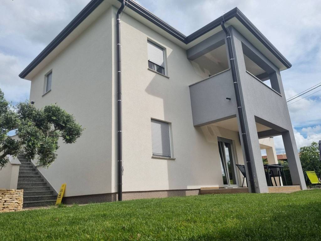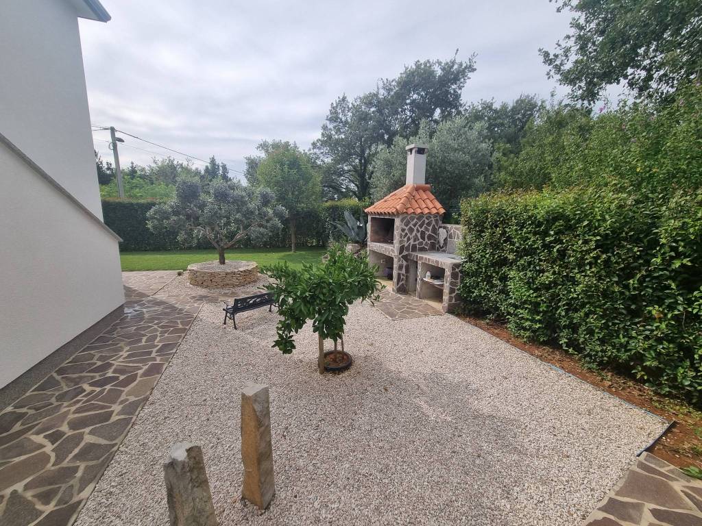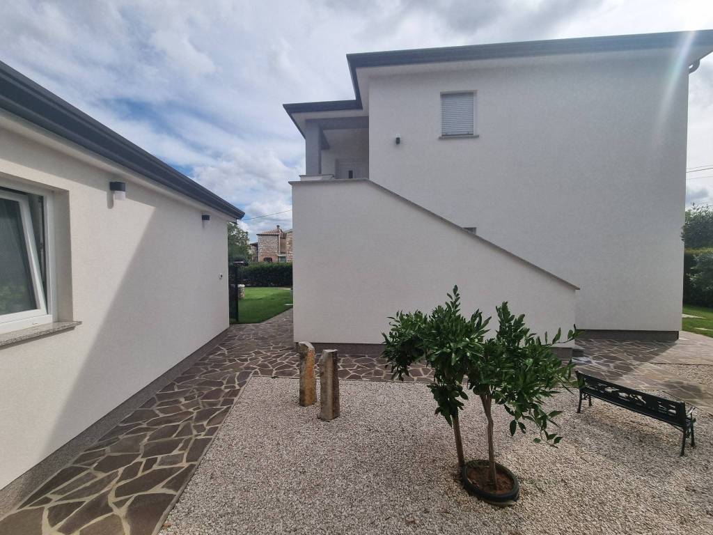 We offer a new house with two apartments and a swimming pool 3 km from Umag and the sea. On a building plot of 750 m2 in a small Istrian village, this newly built high-quality house with two apartments with a total area of 160 m2 is located. Each apartment extends over 75 m2 and consists of a living room and kitchen, 3 bedrooms, a bathroom and a spacious terrace/balcony overlooking the garden and pool. On the ground floor of the house there is a storage room and a technical room. In the landscaped courtyard there is an auxiliary building in which there is a fully furnished studio apartment of 20 m2 with a resting area for socializing and relaxing. On the left side of the house there is a beautiful swimming pool with automatic cleaning, a sunbathing area and an outdoor shower, and on the right side of the courtyard there is a large fireplace and a resting area for family gatherings. The entire garden with automatic irrigation is carefully landscaped and decorated with olive trees and stone mills, and everything exudes Istrian style. The property is surrounded by a green fence that hides it from view, and at the entrance to the garden there is a private parking for 3 cars. The house is equipped with quality furniture, fiber optic cable, satellite dish and air conditioning for heating and cooling. Since this property is located near the sea, it is also suitable for rental, so it can serve as an investment property or a wonderful home for a family or a combination of both. All documentation is in order, the house has a use permit. Don't miss out on this beautiful property!