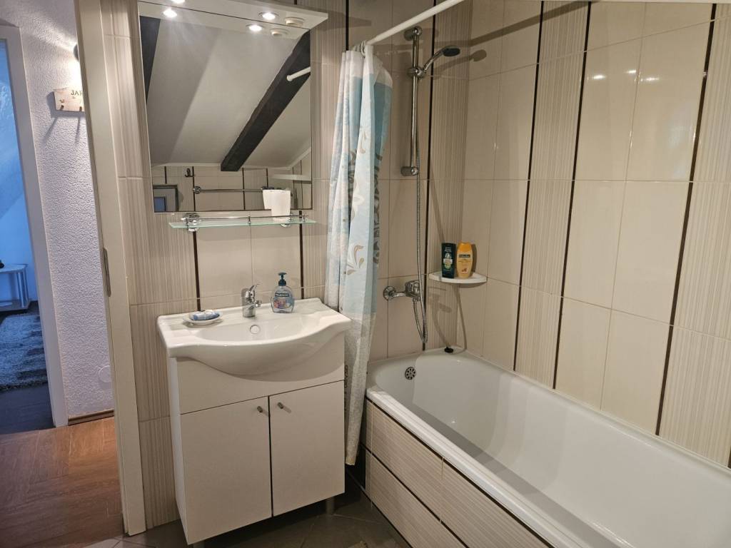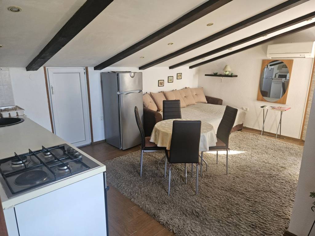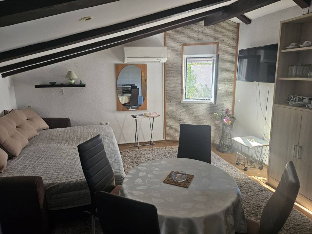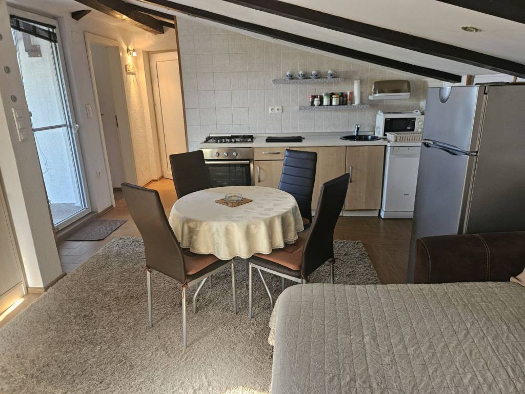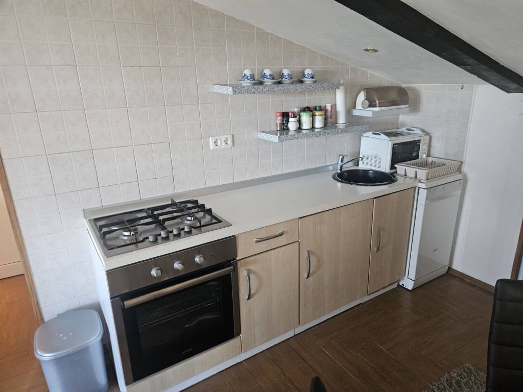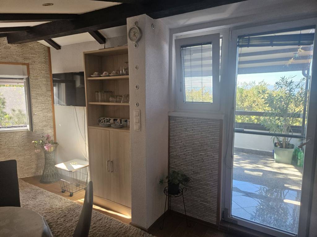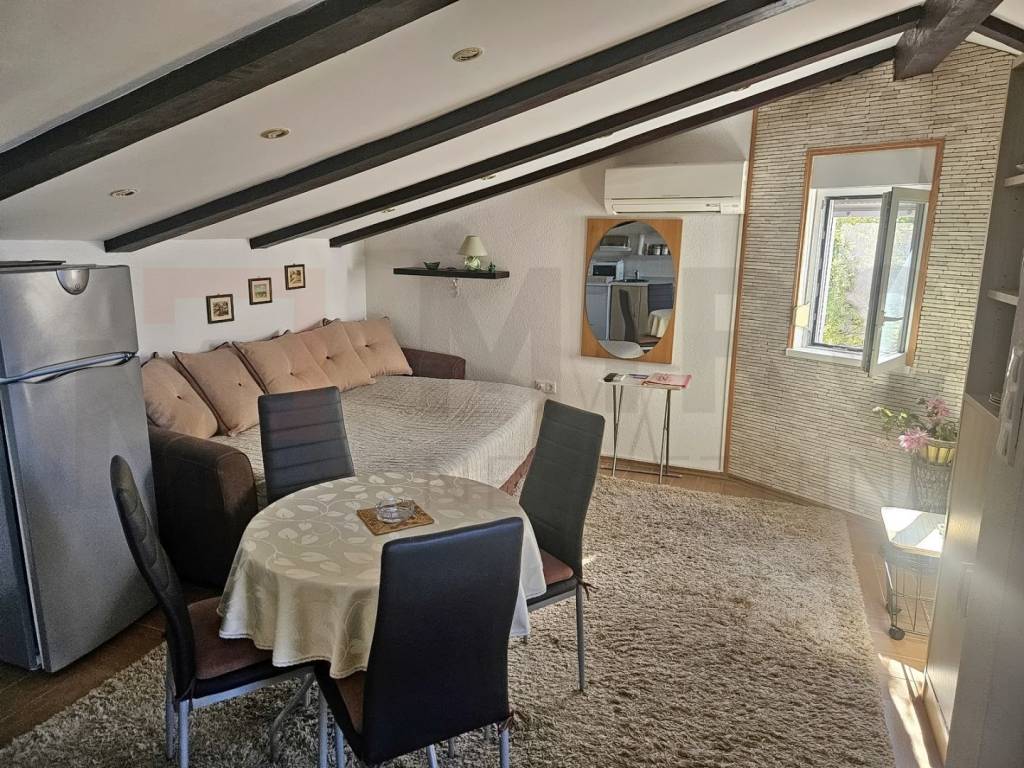 The island of Krk, Malinska offers a furnished duplex apartment located in a smaller residential building, close to the sea and the center of Malinska. This beautiful apartment is located on the 1st floor and the attic. It consists of an entrance hall, a bedroom on the 1st floor, stairs lead to the attic where there is a bathroom, bedroom, living room, kitchen and dining room with access to a large terrace overlooking the sea. The property also includes a storage room and an unfurnished attic space of 40 m2. The apartment has one parking space in the building's yard. The apartment is fully furnished and equipped, ready to move in immediately. It is located in a quiet location only 800 m from the beach. The documentation is in order, the ownership is clear, and the buyer bears the 3% real estate tax. Visit us and find the square footage of your home!