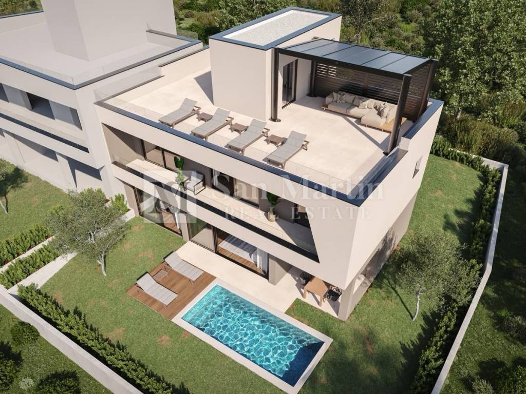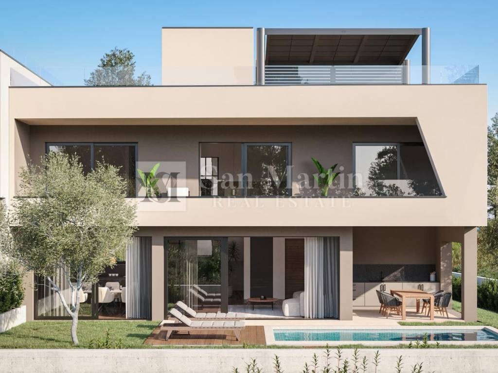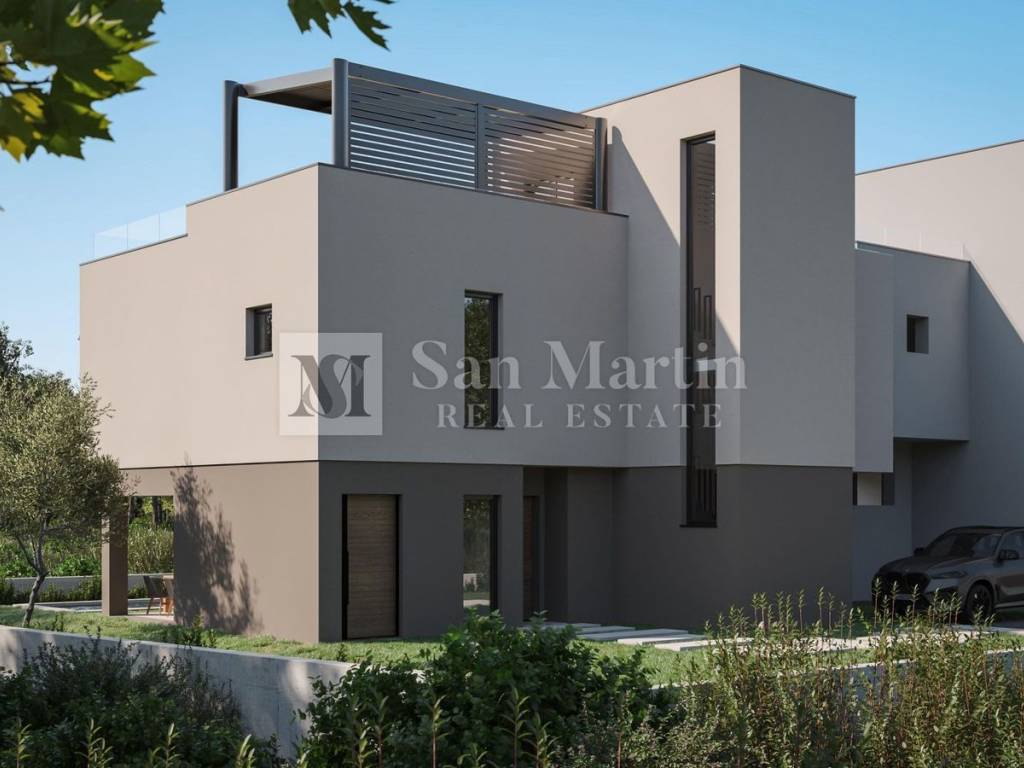 Medulin, near the sea In a desirable location in Medulin, this newly built house is for sale! It is located only 700 meters from the sea, with cafés, restaurants, shops, and other amenities for everyday life and leisure nearby. The house consists of a spacious living room with direct access to the paved sun deck and swimming pool, a dining area with a kitchen, a guest toilet, and a technical room. From the living area, there is also access to an outdoor kitchen. An internal staircase leads to the first floor, which includes three bedrooms, each with its own bathroom. Every bedroom has access to a large terrace. What truly makes this property stand out is the rooftop terrace, offering a stunning sea view, accessible by the internal staircase as well. Heating is provided by air conditioning units and electric underfloor heating. The property is also equipped with a video surveillance system. Thanks to its modern architecture, high-quality equipment, and excellent location, this property is the perfect choice—whether as a family home or as a profitable investment for the tourist season ID CODE: 1022 Toni Kristijan Mob: +385 91 556 2470 Tel: +385 91 556 2470 E-mail: toni@sanmartin-realestate.com www.sanmartin-realestate.com