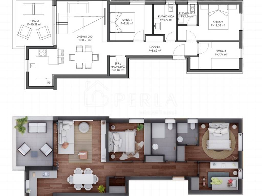 SUKOŠAN - three-bedroom apartment marked S05 for sale on the 2nd floor, only 60 m from the sea.