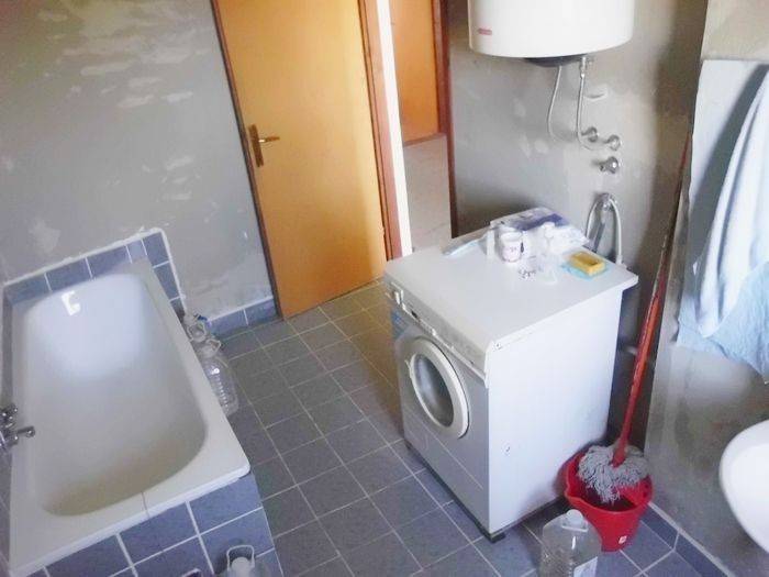 Podovi su u betonu (treba podna obloga), a u kupaonici su u keramici.