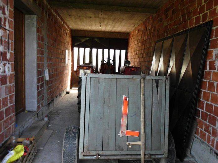 Na ulasku u kuću se nalazi haustor koji služi kao garaža za vozila.