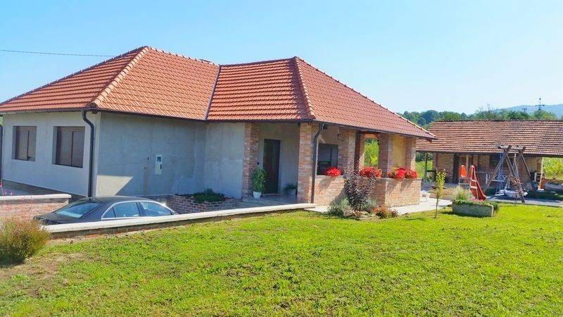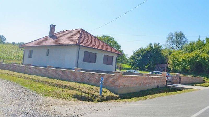 2 km od centra Pakraca, na mirnoj lokaciji, prodaje se nova, odmah useljiva kuća sa dvorištem i zidanim ambarom.