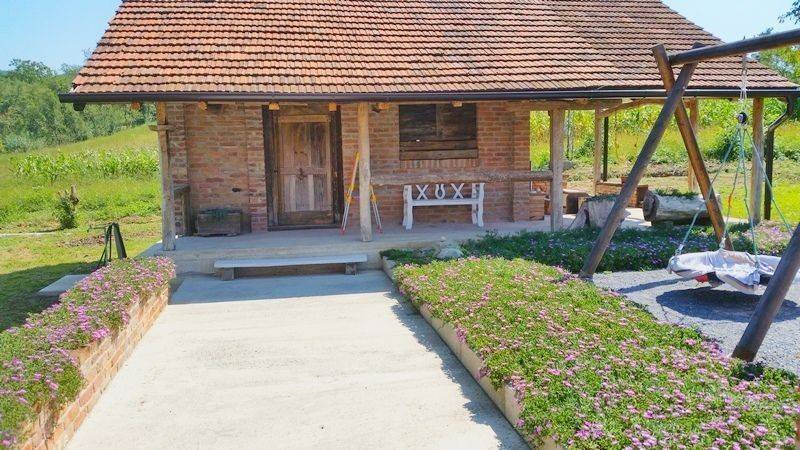 Zanimljiv detalj je zid od stare cigle u dnevnom boravku, a taj detalj se nastavlja i na terasu, ambar i ogradu oko cijelog dvorišta.