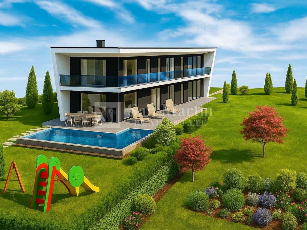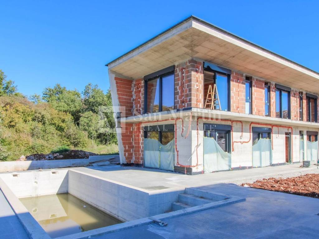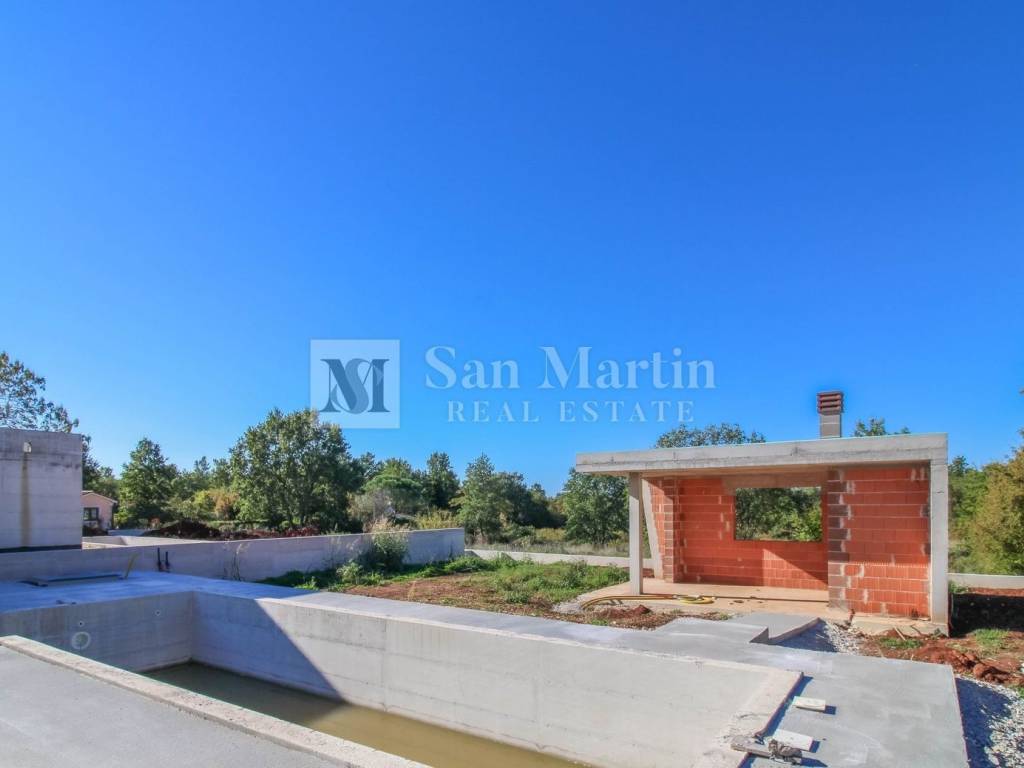 Just a ten-minute drive from the sea and the center of Poreč, in a quiet and green settlement, there is a modern villa under construction that combines contemporary architecture, functionality and comfort. Located on a spacious plot of 1,080 square meters, this property offers the perfect balance between privacy, security and proximity to all city amenities. On one side it is surrounded by a forest, and on the other by a quiet neighborhood of family houses, which creates an idyllic environment for a relaxed lifestyle. The total gross living area is 242.95 square meters, distributed over two floors - ground floor and first floor. The plot also has a spacious swimming pool of 36.30 square meters, a summer kitchen of 23.88 square meters, an outdoor storage room and three parking spaces. On the ground floor there is an entrance hall with a covered passage, a bedroom with a private bathroom, a guest toilet and an open living area that includes a kitchen, dining room and living room. The living area leads to a partially covered terrace that leads to the pool and landscaped garden. Upstairs there are three spacious bedrooms, each with its own bathroom and access to a balcony overlooking the surrounding nature. The villa is constructed of reinforced concrete slabs, with a high-quality ETICS facade system and eight-centimeter thermal insulation. Aluminum joinery with electric blinds and mosquito nets has been installed, and underfloor heating is provided by an air-to-water heat pump system, while a split system is provided for cooling. There is a chimney in the living room with the possibility of installing a fireplace, and additional comfort and security are provided by an automatic entrance gate, video surveillance, an alarm system and a landscaped garden with automatic irrigation, lawn and Mediterranean plants. The property is being sold in the unfinished phase, which opens up the possibility for the future owner to completely adapt the interior to their own wishes and needs. This phase allows for the personalization of finishing materials – flooring, ceramics, sanitary ware, lighting and wall colors – with quality control of the work and the selection of their own contractors. This also provides significant savings compared to the finished property, as well as flexibility in adjusting the layout and functional details. This modern villa is an ideal choice for families who want to enjoy peace and comfort near the sea, but also for investors looking for a luxury property for tourist rental or combined use. By purchasing at this stage, you get the opportunity to create a home to your own liking - in one of the most desirable parts of Istria, where quality of life meets natural beauty and the Mediterranean way of life. ID CODE: 1023 San Martin nekretnine Mob: 00385 91 556 2470 Tel: +385 91 556 2470 E-mail: toni@sanmartin-realestate.com www.sanmartin-realestate.com