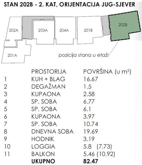 ZGRADA - 21 stan, 5 etaža, 2 stubišta i 2 dizala.
