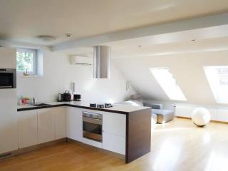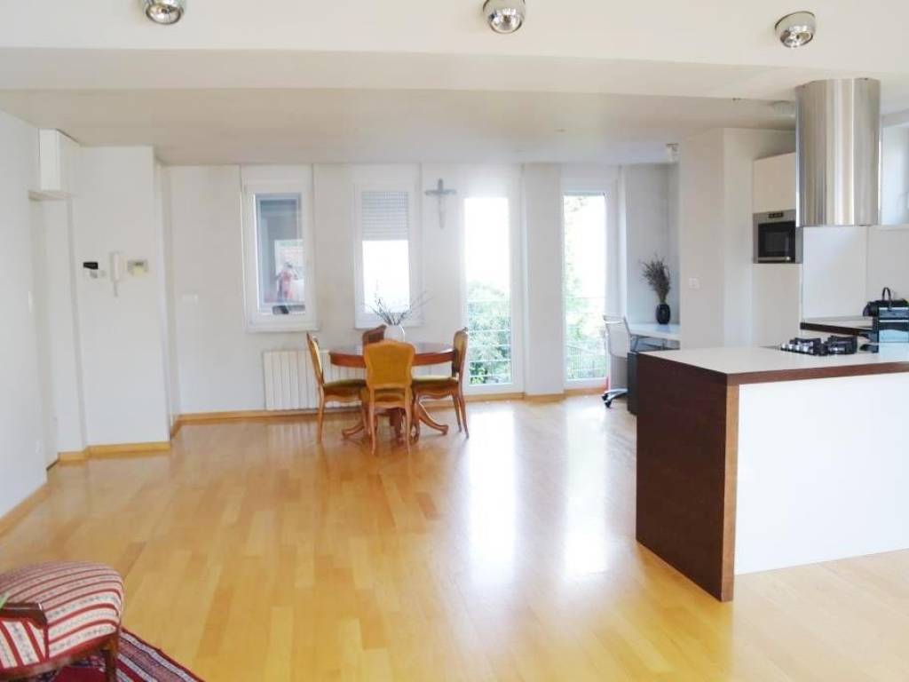 This beautiful attic apartment is located on the 3rd floor and has 80 sq m. The apartment consists of a spacious living room with kitchen and dining area, a separate sleeping area with a double bedroom, a single bedroom and a large bathroom. The apartment has a lot of daylight, to the north it has French windows overlooking the courtyard, to the south and west it has large roof windows. The property is located at the beginning of Medvedgradska Street, near Tkalčićeva Street and the tram stop in Medvešćak Street, walking distance from the main square is 10 minutes. Agency fee 1 rent.