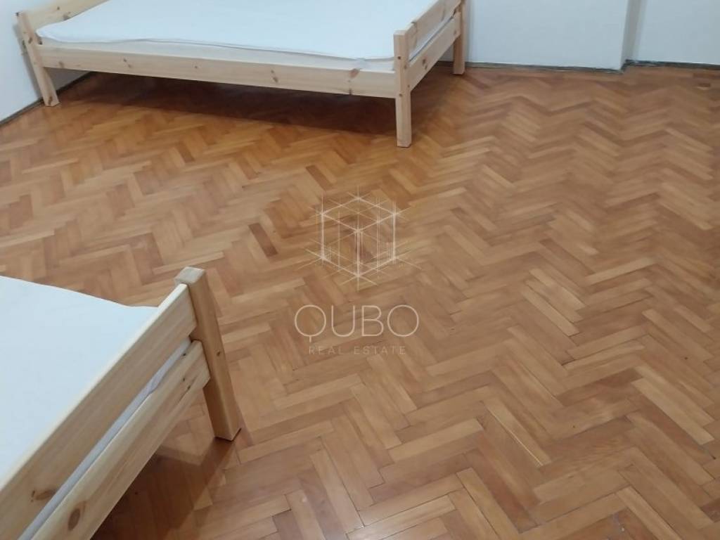 The apartment measures 67 m² and includes two spacious bedrooms, a kitchen with dining area, hallway, pantry, and bathroom. It also comes with an impressive 140 m² private garden — a true rarity in the Old Town — and a storage room in the courtyard.