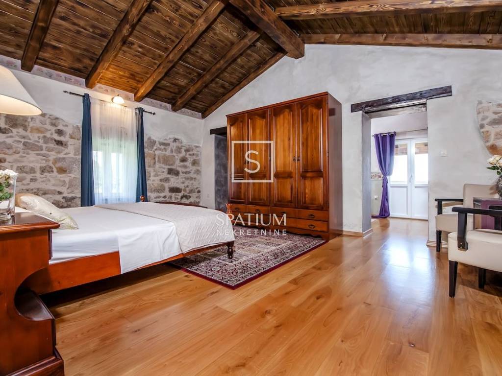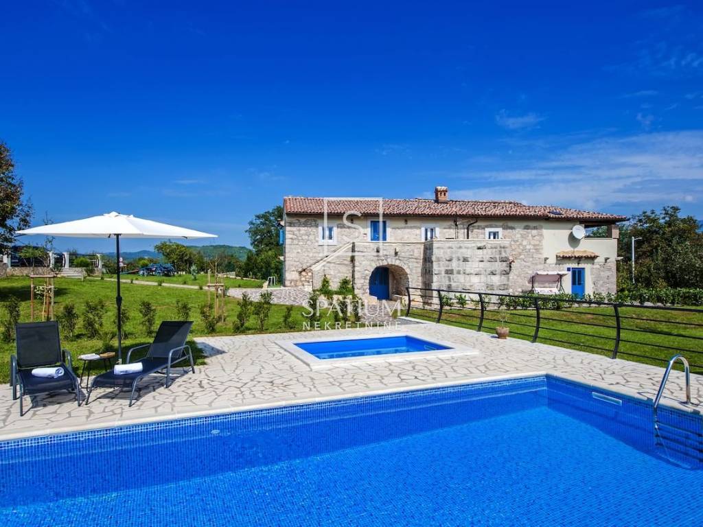 PIĆAN, we are offering a beautiful traditional Istrian stone house with two swimming pools, a tennis court, fifteen kilometers from the sea, located on a large plot of 2800m2. On the ground floor there is a modern kitchen with a dining room, a rustic living room with a fireplace, a guest toilet, and a large separate room with its own bathroom. There are three large bedrooms on the first floor, each with its own bathroom and a beautiful terrace with a view of the surrounding area. The house has been completely renovated in a traditional style with some modern details that give the house a special atmosphere. The yard is fenced and planted with various Mediterranean plants that provide complete intimacy. The large garden has a private tennis court, basketball hoop, table football and darts with outdoor lighting. On the other side of the house, there are larger and smaller pools for children, swings, a summer kitchen with a grill, benches and a table for "al fresco" dining, as well as four parking spaces. THE MUNICIPALITY OF KRŠAN can rightfully boast of a rich cultural and historical heritage, which in some places dates back to the 11th century. You will feel the beauty and diversity whether you start your visit to the municipality from the Krsna Kaštela, where the Istrian Divorce was found, the Plomin church of St. George the Old, which hides the oldest known Glagolitic inscription – the Plomin inscription, of the western massifs of Učka and the Kožljak castle, the Romanesque church of St. Quirinus and frescoes from the 15th century with details depicting the dedication of the famous painter Albert, the town of Čepić and the lake of the same name that dries up and turns into arable fields or from the youngest settlement in Istria - Potpićna. For any additional information, contact an agent with confidence. Sanjin Latinčić +385 91 28 99 599 sanjin@spatium.hr Spatium nekretnine +385 51 272 903 info@spatium.hr