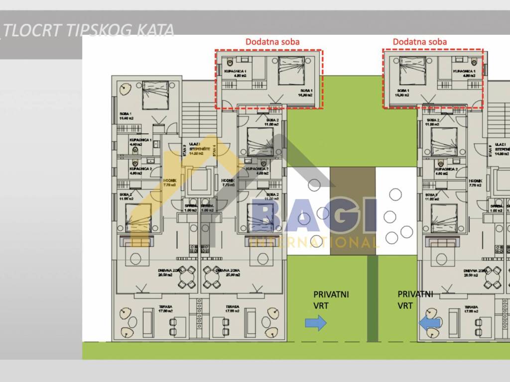 -U sklopu suterena smješten je ulaz, spremišta i garaže 1 za svaku jedinicu