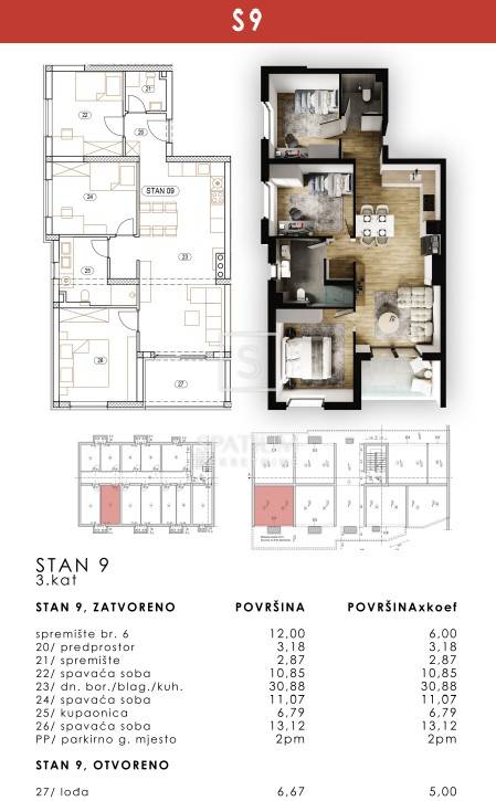BRESTOVICE, KASTAV, we offer an apartment in a new building with an area of 86.14 m2. It consists of an entrance area, a toilet, three bedrooms, a bathroom, and a living room with a kitchen and dining room, from which there is access to the loggia. It has two parking spaces in the garage and a storage area of 12.00 m2. The apartment has an excellent layout, especially for a larger family, and due to the proximity of the ring road, shopping center and public transport, it is a pleasant place to live. In this phase, it is possible to choose floor coverings and sanitary ware in a certain value. Electric underfloor heating and air conditioning will be installed in all rooms and the living room. The estimated deadline for moving in is May 2025. Kastav - the town that watches over the northernmost part of Kvarner from a 365-meter high hill - is much more than an old castle, and its story begins in distant history. There is almost no period in the past of our wider homeland that is not marked by the mention of the Kastava name - from the prehistoric settlement from the Paleolithic era, the Roman camp to the arrival of the Croats. Today, the area of the town of Kastava is not large, but in ancient times the Kastava lordship extended all the way to the slopes of Učka, so Veprinac and Mošćenice were part of the Kastava captaincy. In its ancient towers, the medieval Lodge, the walls of Crekvina, the church of St. To Jelena Križarica, the old barn on Lokvina Square and the former captain's castle, in one wing of which the city government still sits today, Kastav keeps almost all of its told and untold, still living and long-forgotten stories. For other information, please contact us with confidence. Azalea Kegalj licensed agent +385 95 905 5464 azalea@spatium.hr Spatium nekretnine +385 51 272 903 info@spatium.hr